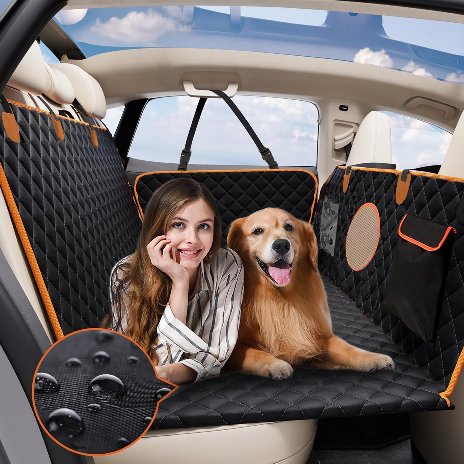 - 🐾【High Quality Materials】: Dog seat cover made of thickened and waterproof high-density polyester fabric, it is durable, waterproof, tear-resistant, and will not collapse or fall off easily. It is more comfortable and firm than ordinary Oxford cloth, and will not let water and stains penetrate into the car seat.