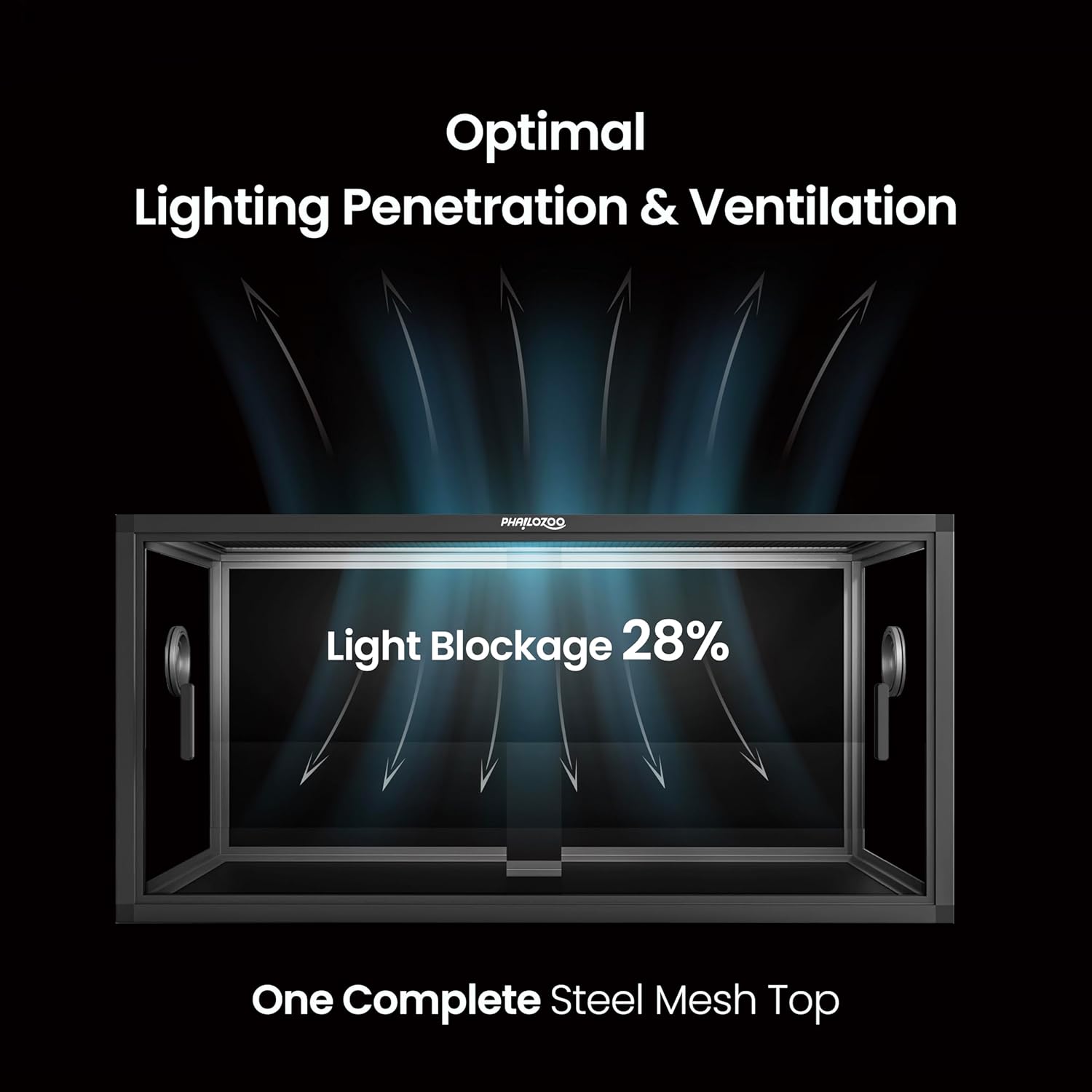 - 【Highly Adaptive】Well-lit screen top with only 28% blockage. Compatible with many reptile accessories and equipment, such as heat lamps for reptiles, reptile humidifiers, reptile misters, reptile foggers, reptile UVA and UVB. Our reptile terrarium is great for holding temps and humidity.