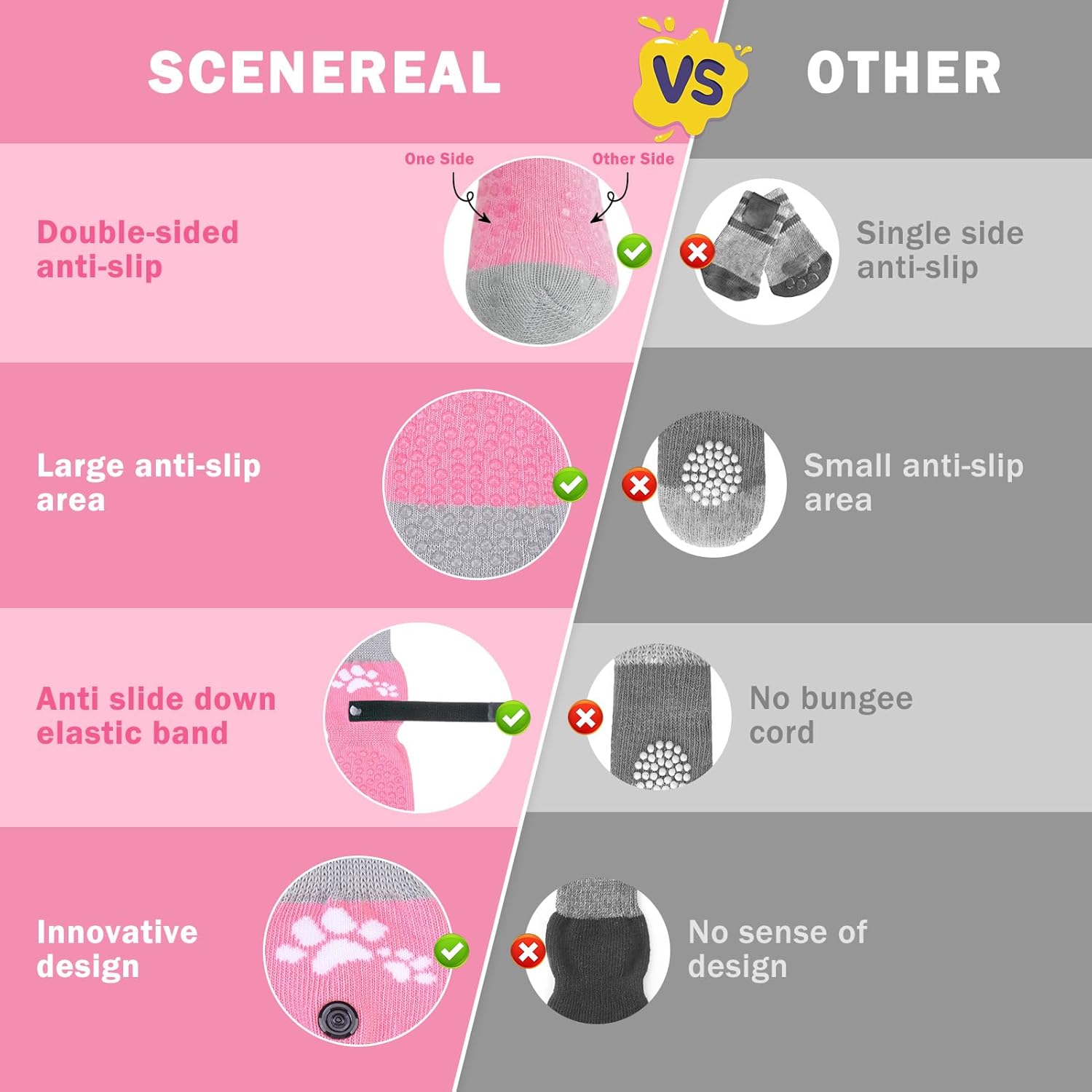 - MULTIFUNCTIONAL MULTI-SITUATION APPLICATION: This dog socks for hardwood floors can provide protection for your dog's paws from hot pavement, heat and other potential hazards in the summer. Wearing our socks also prevents dogs from licking and irritating wounds, further aiding in the healing of foot wounds.