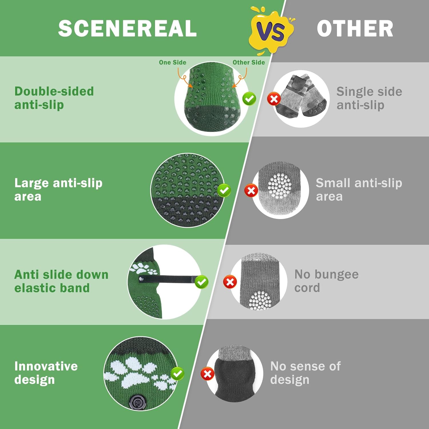 - BOTH SIDES & LARGE AREA NON-SLIP PET SOCKS: The dog grippy socks have a large adhesive on both sides, which provides your senior old dog with great extra traction and will not slip even when twisted. Therefore, if your furry friend has problems with his hind legs slipping on wooden floors, we recommend that you purchase these soles.