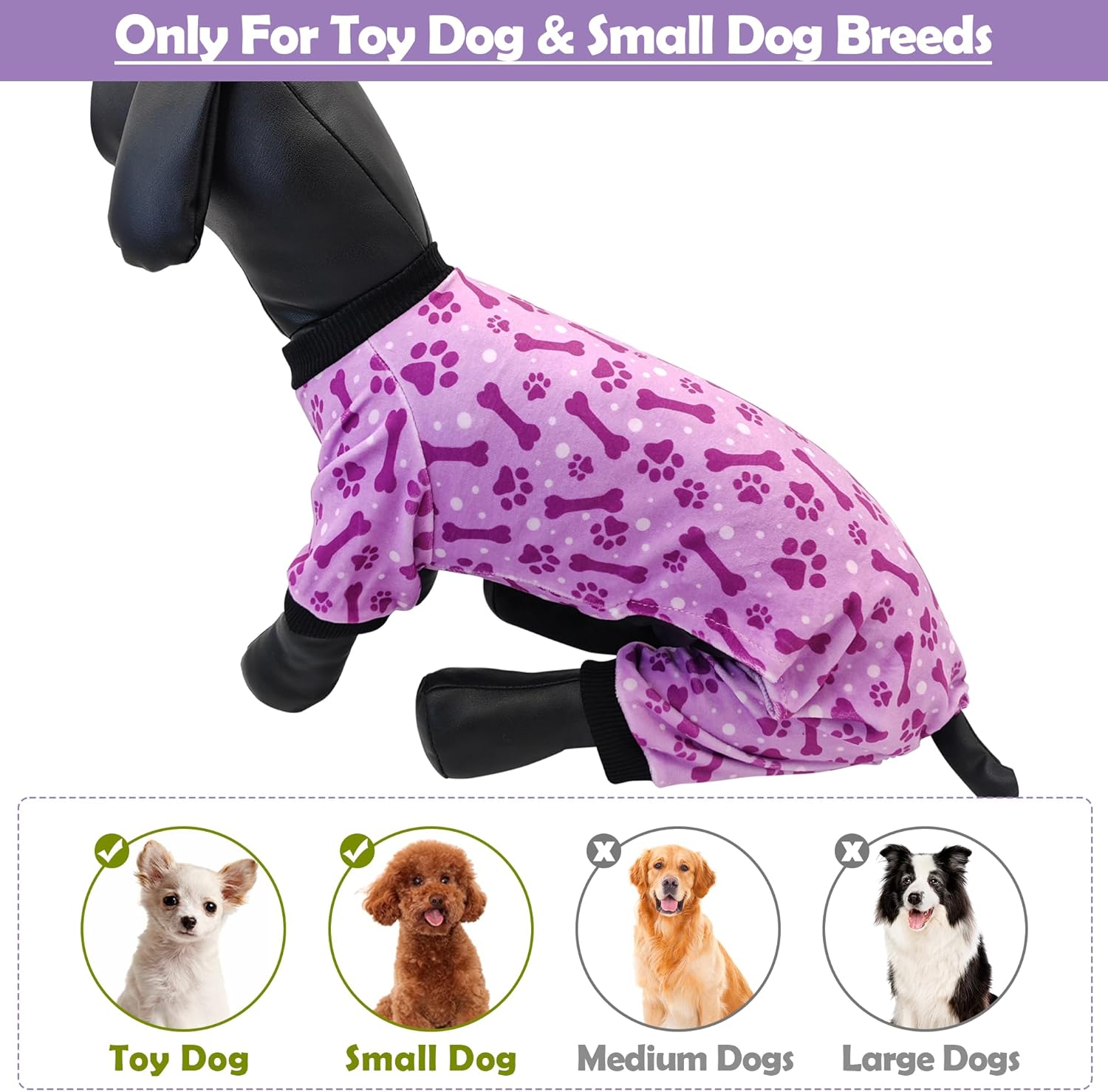 PET SHOW 4 Pack Small Dog Pajamas Paw Bone Patterns Cute Clothes for Medium Dogs Soft Fleece Stretchy PJs 4 Legged Jumpsuit Puppy Cats Onesies Outfits with Sleeve Dachshund Doggies Girl Boy (X-Large)
