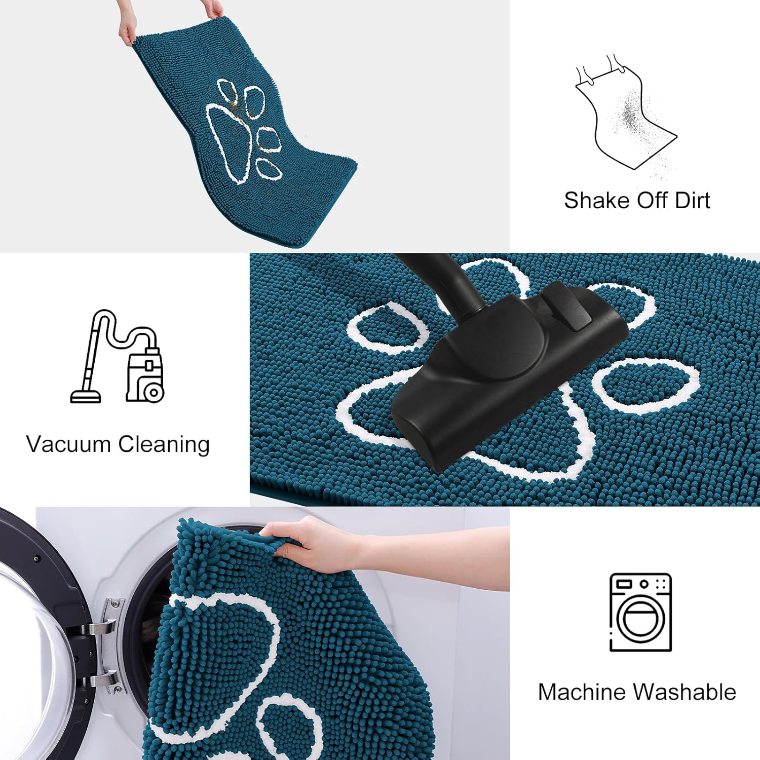 Smiry Dog Door Mat for Muddy Paws, Absorbent Dirt Trapper Non Slip Quick Dry Washable Chenille Mat for Mud Dogs, Entry Rug for Indoor and Outdoor (36x24 Inches, Atlantic Blue)