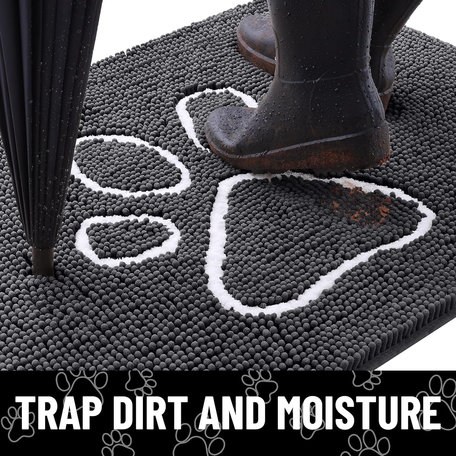 Smiry Dog Door Mat for Muddy Paws, Absorbent Dirt Trapper Non Slip Quick Dry Washable Chenille Mat for Mud Dogs, Entry Rug for Indoor and Outdoor (47x24 Inches, Dark Grey and White)