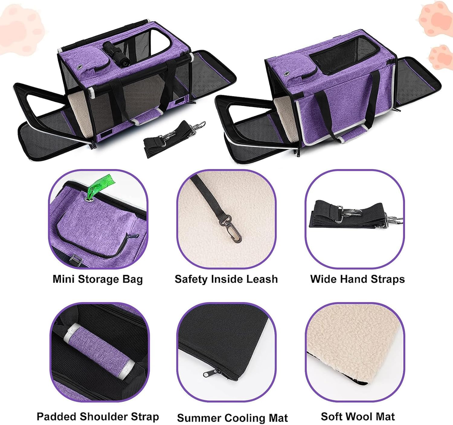 - 【Washable Liner】The large cat carrier is made from durable fabric-oxford material, and the faux lambskin liner which offers a cozy space for your pet can be removed entirely and machine-washed.
