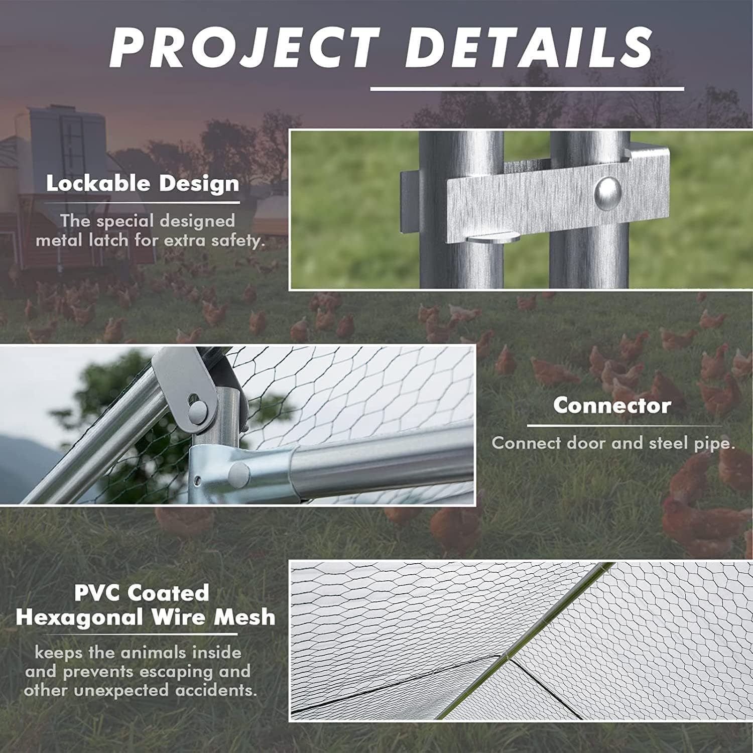 - Durable Steel Chicken run house: The chicken coop uses a durable steel pipe frame, coupled with galvanizing technology, don't worry about rusting in outdoor. The steel pipe diameter reaches 0.98 inches, which is strong and stable enough in windy and rain