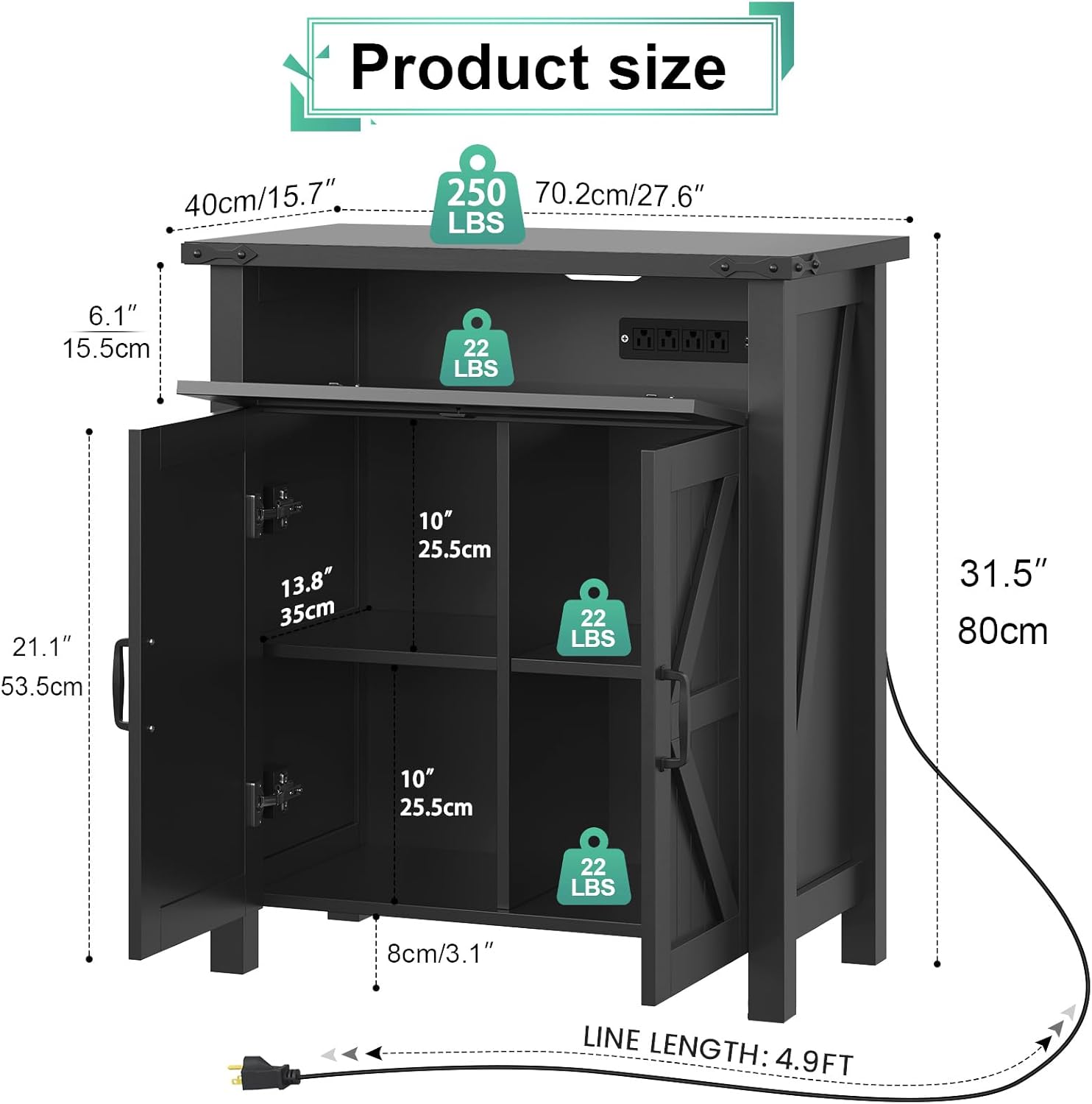 20 Gallon Aquarium Stand With Charging Station, Farmhouse Fish Tank Stand, Reptile Tank Stand Terrarium Stand with Drawer and Cabinet Storage, Sturdy Heavy Duty 27.6"×15.7" Tabletop - Black