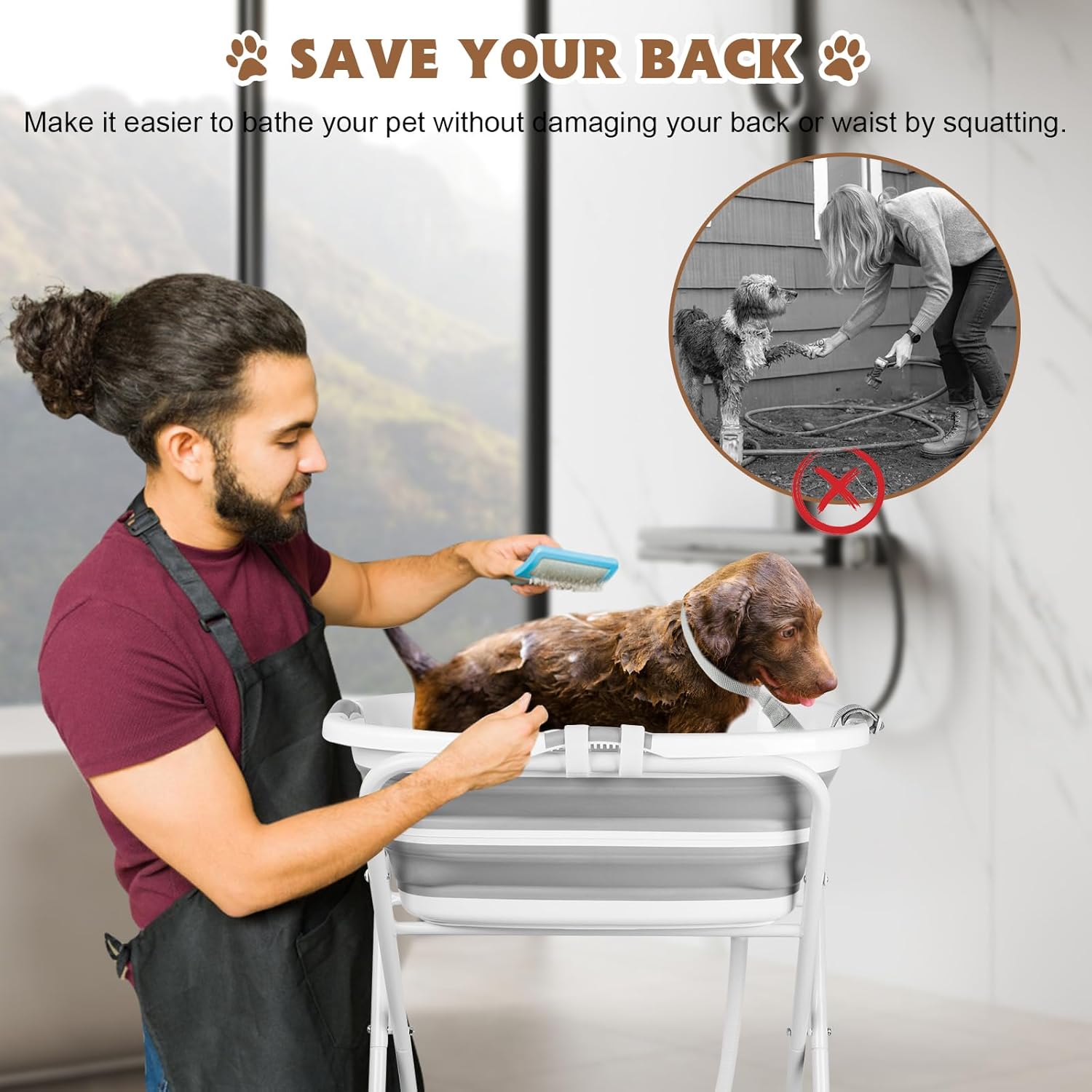 - Safety design: The dog wash tub comes with a safety collar, so that pets can better stay in the tub when bathing; While ensuring the safety of the dog, it will not dirty the floor due to the dog running around