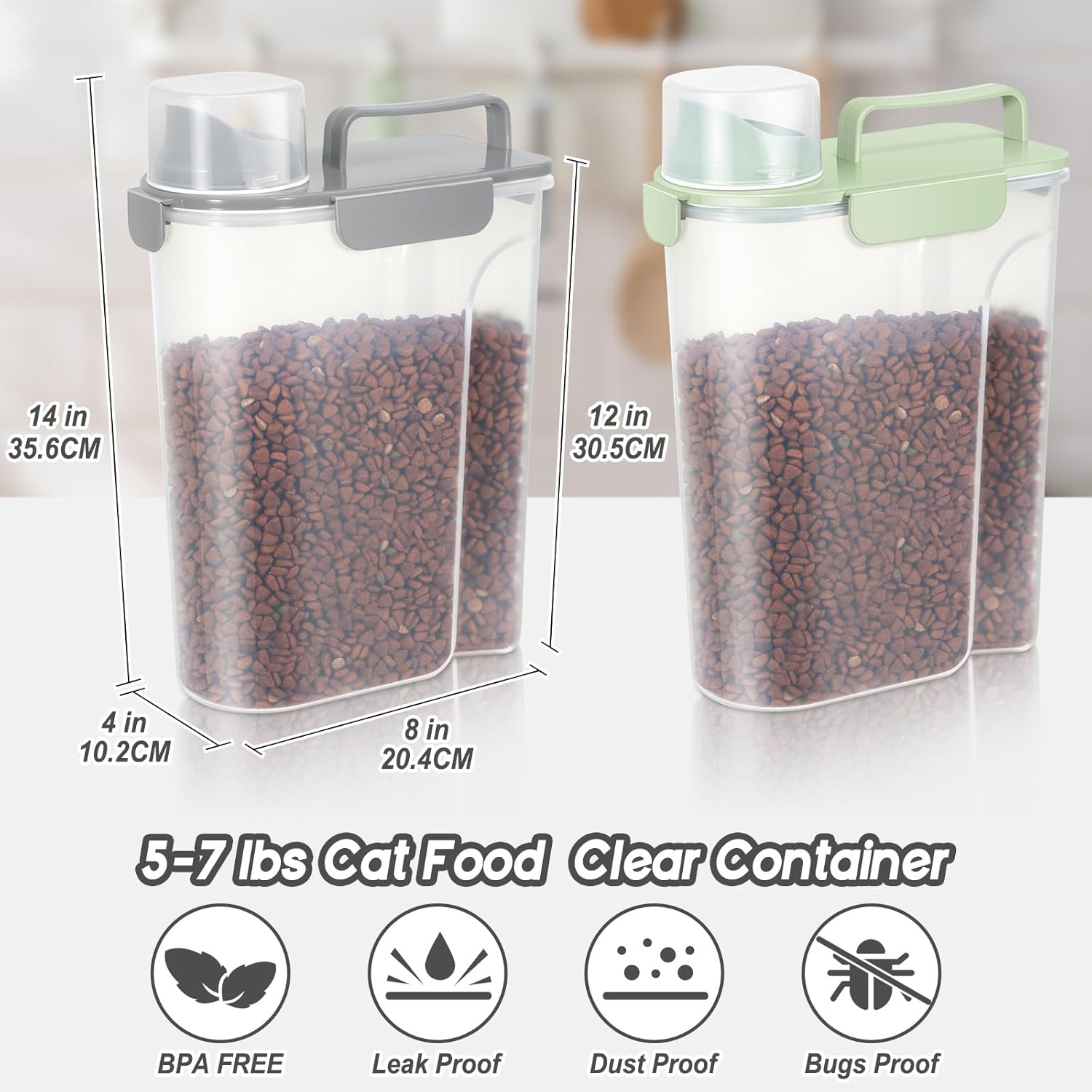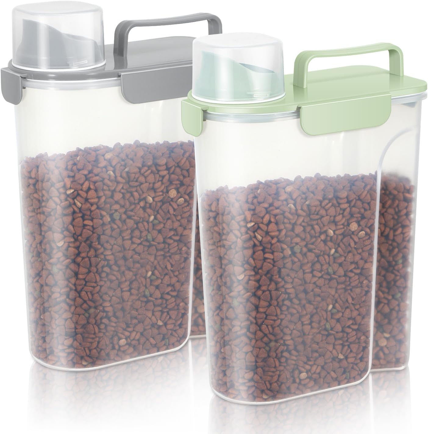 5-7Lbs Dog Cat Food Storage Container with Upgraded Large Nozzle BPA-free, 4 Snap Seals Plastic Pet Food Storage Containers with Handles (2, Light Green+Light Gray, 5L)