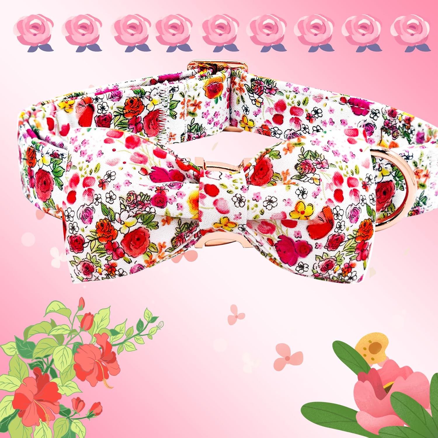 Elegant little tail Dog Collar, Pink Rose Print Pet Collar Summer Dog Collar Durable Metal Buckle Dog Collars Cotton Pet Adjustable Dog Collars for Medium Dogs