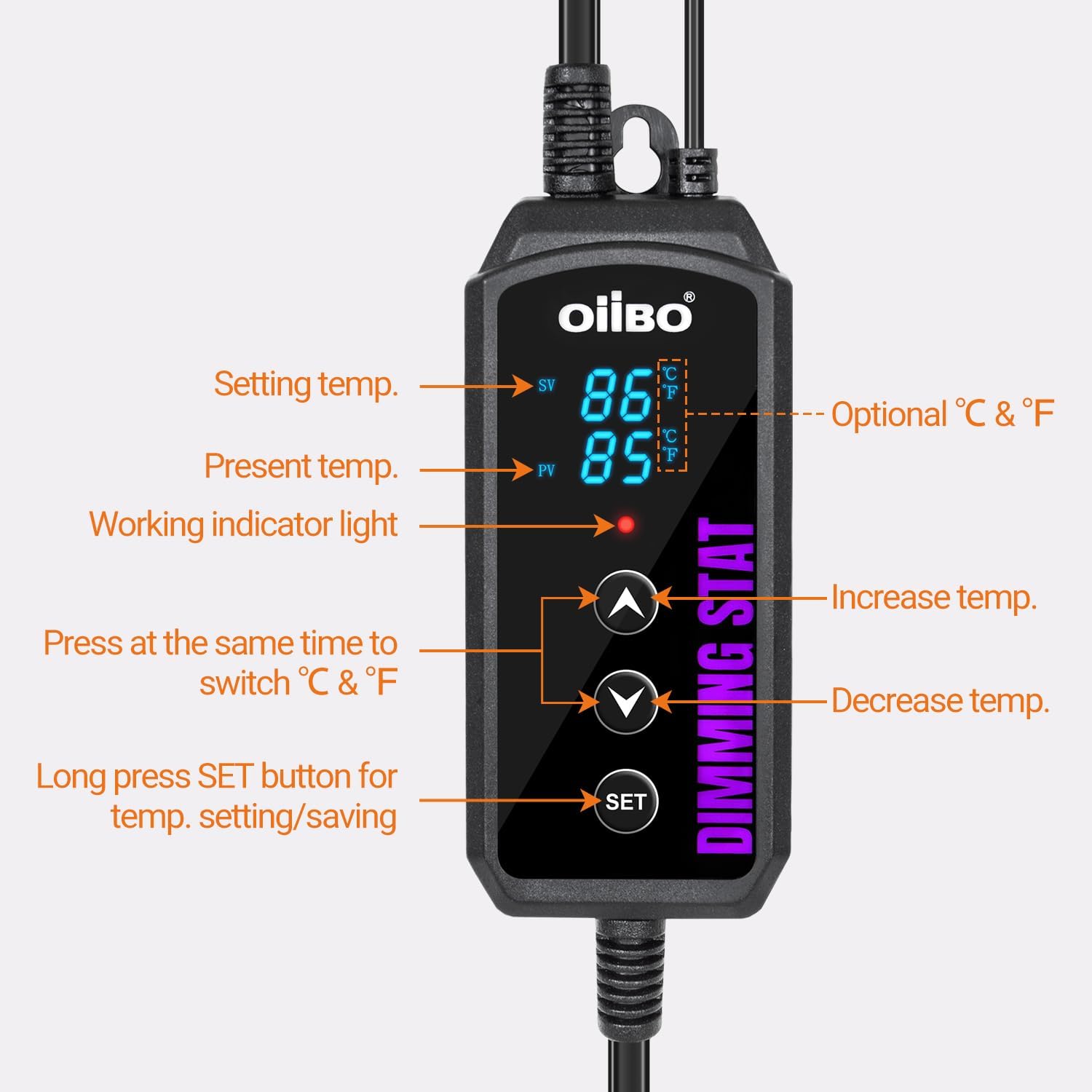- 【Convenient Design】 Plug-and-play. Simply insert the temperature probe into the measurement location, set the appropriate temperature range using the up and down keys, and connect the heating device. LED display shows both the set & real-time temperature. Features power-off memory.