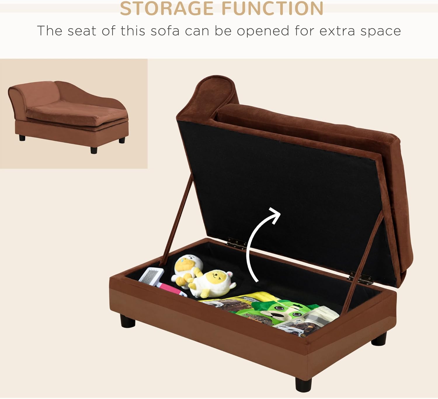 PawHut Luxury Fancy Dog Couch with Hidden Storage, Small Dog Sofa Bed with 2" Soft Foam, Modern Pet Furniture for Puppies & Little Breeds, Brown