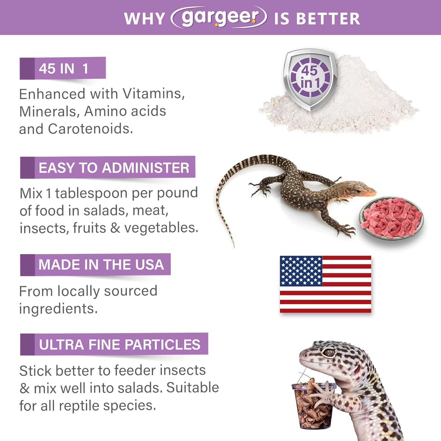 4oz All Reptile & Amphibian Multi-Vitamin Powder. Premium Supplement, Supports Growth, Recovery, and Development. Boosted with Minerals, Carotenoids, and Amino Acids. Made in USA. Enjoy!