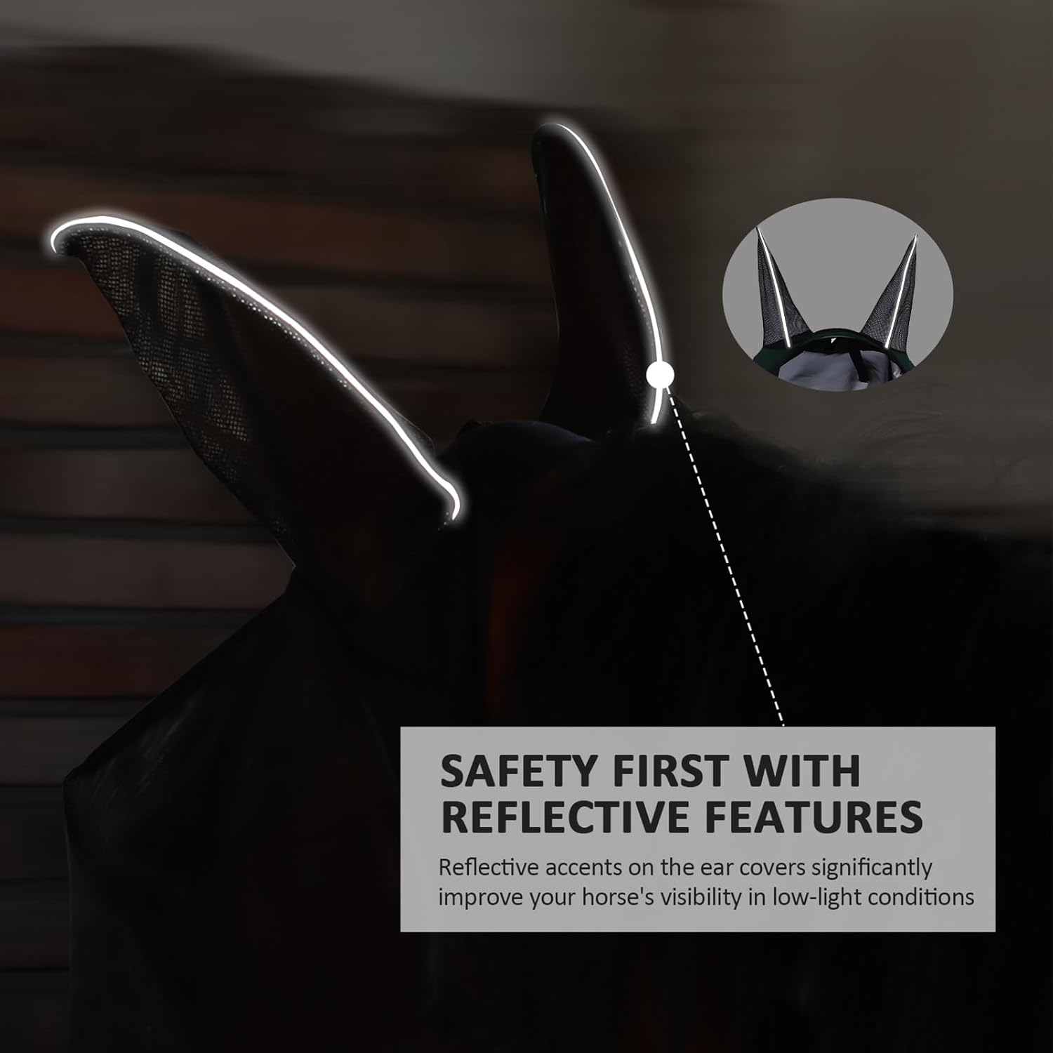 - Safety First with Reflective Features: Reflective accents on the ear covers significantly improve your horse's visibility in low-light conditions, providing an extra layer of safety during early morning or evening routines.