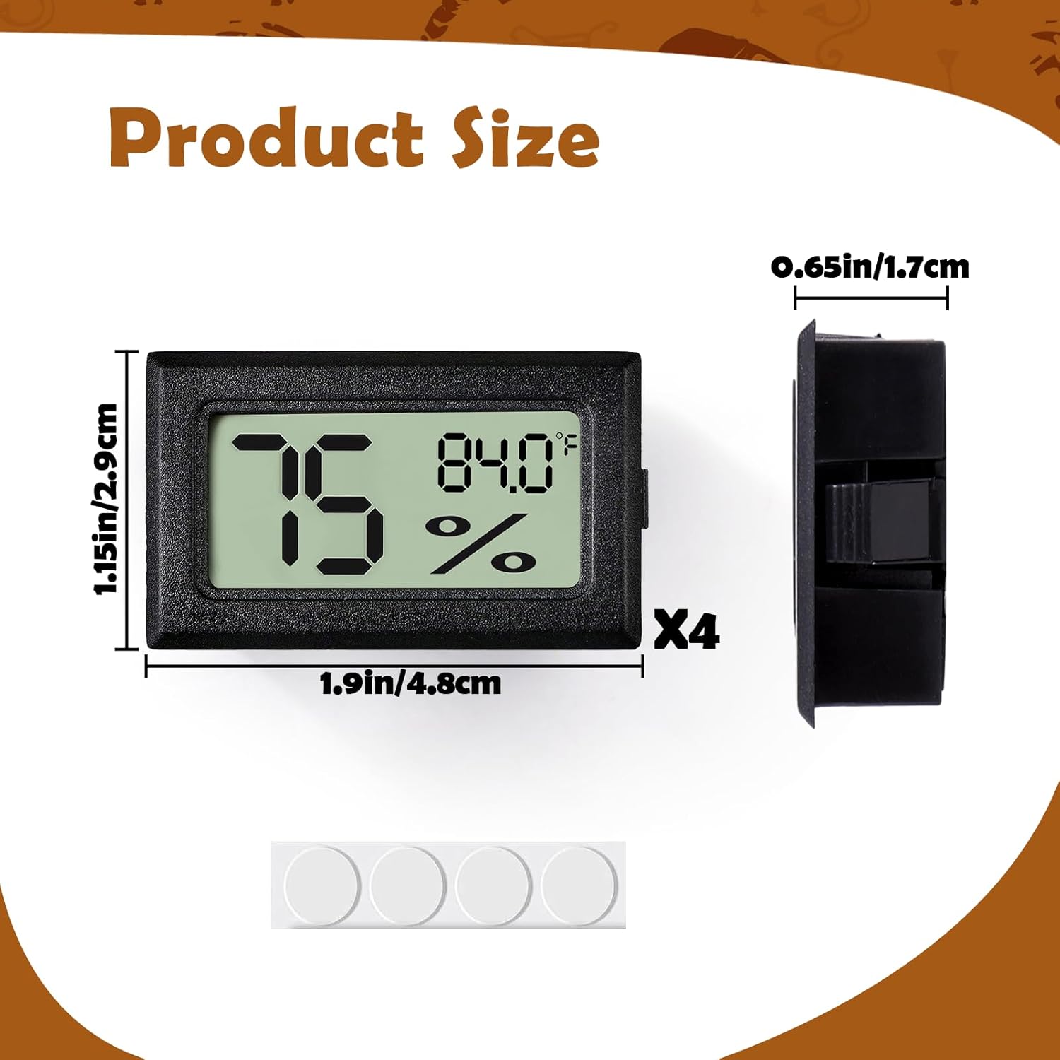 Reptile Thermometer and Humidity Gauge,4PCS Digital Adhesive Reptile Hydrometer Thermomete Tank Accessories Pet Supplies for Tortoise Habitat,Chameleon Cage,Iguana,Tree Frog Terrarium