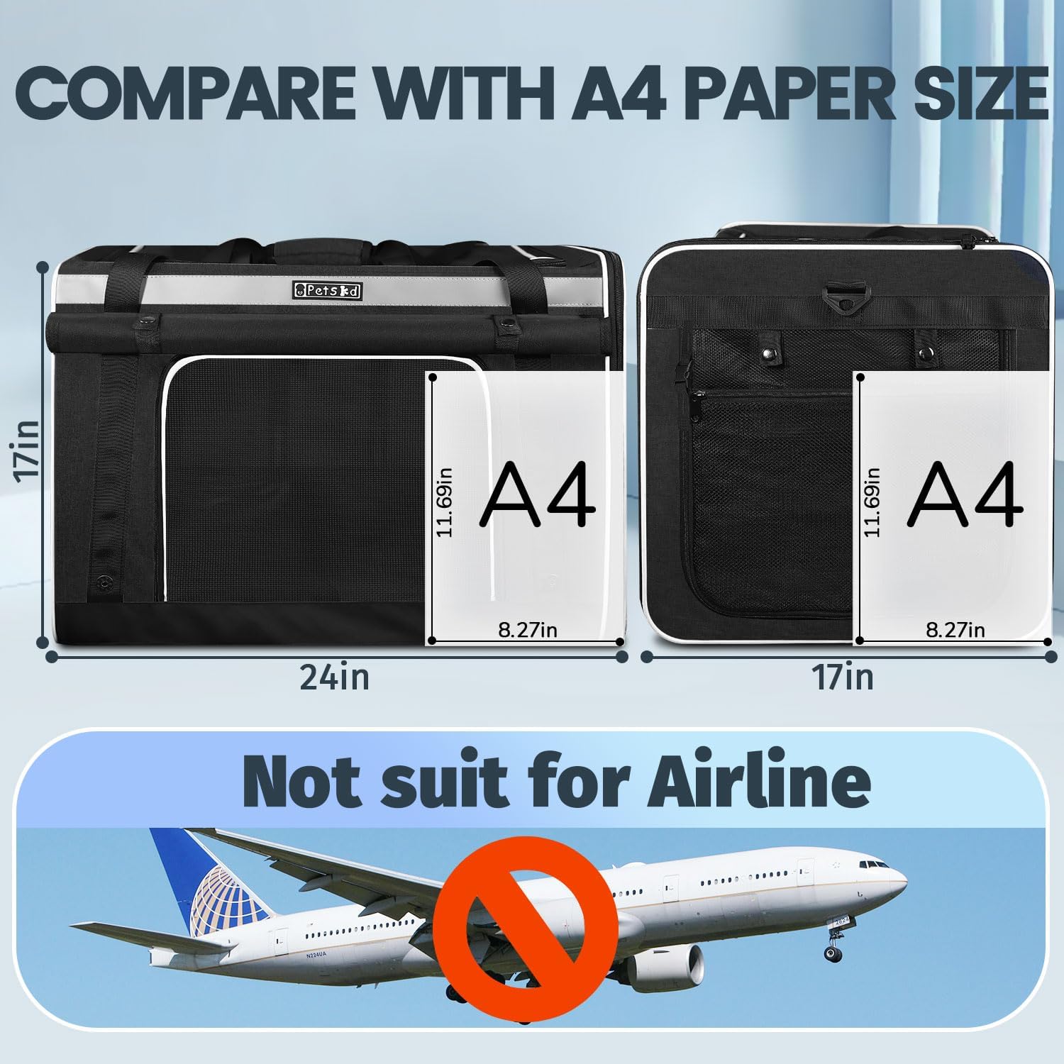 Petskd Extra Large Cat Carrier for 55LBS Pet Car Travel with Litter Box, 24"x17"x17" Soft Large Cats or Medium Dog Carrier with 5 Breathable Mesh Windows and Locking Zippers for Long Distance(Black)