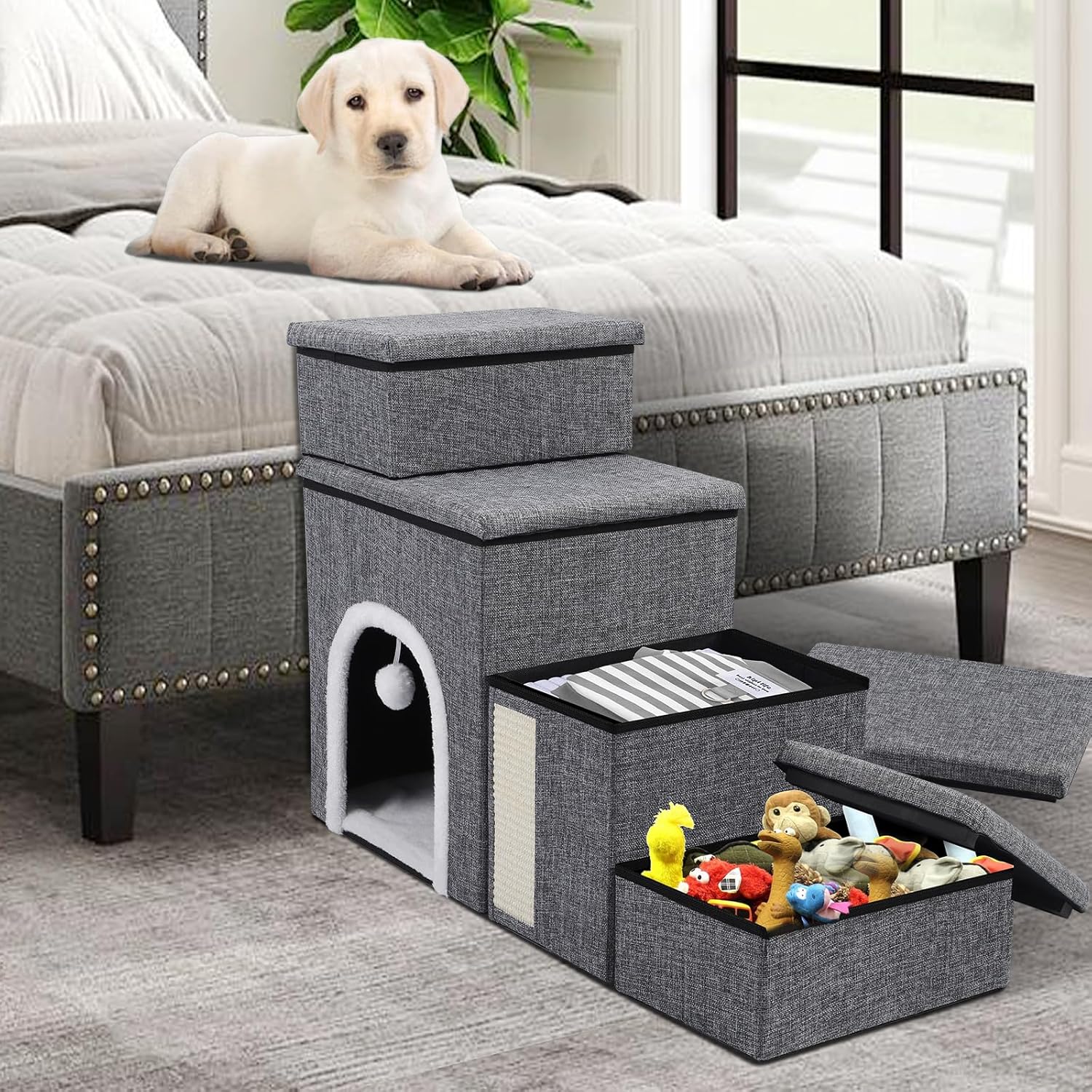 - 🐾【4-IN-1 Multi-Functional Pet Stairs】: Shikha multi-functional dog stairs combine climbing, resting, playing, and storage in one, catering to all your pet’s needs. The sleek and stylish gray color perfectly matches your modern home decor!