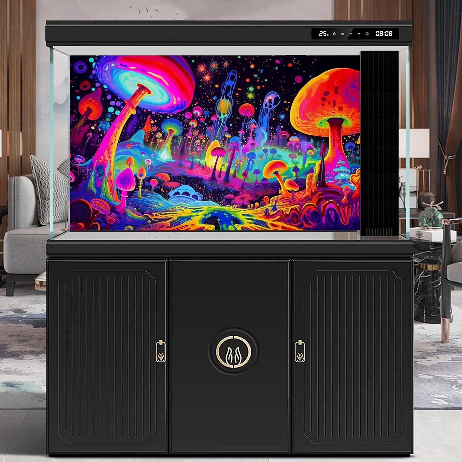 Fantasy Mushrooms Aquarium Background Abstract Mysterious Mushroom Landscape Terrarium Background Amazing Rainbow Mushrooms Theme Fish Tank Backdrop Poster Wallpaper Decorations Vinyl 30x12in