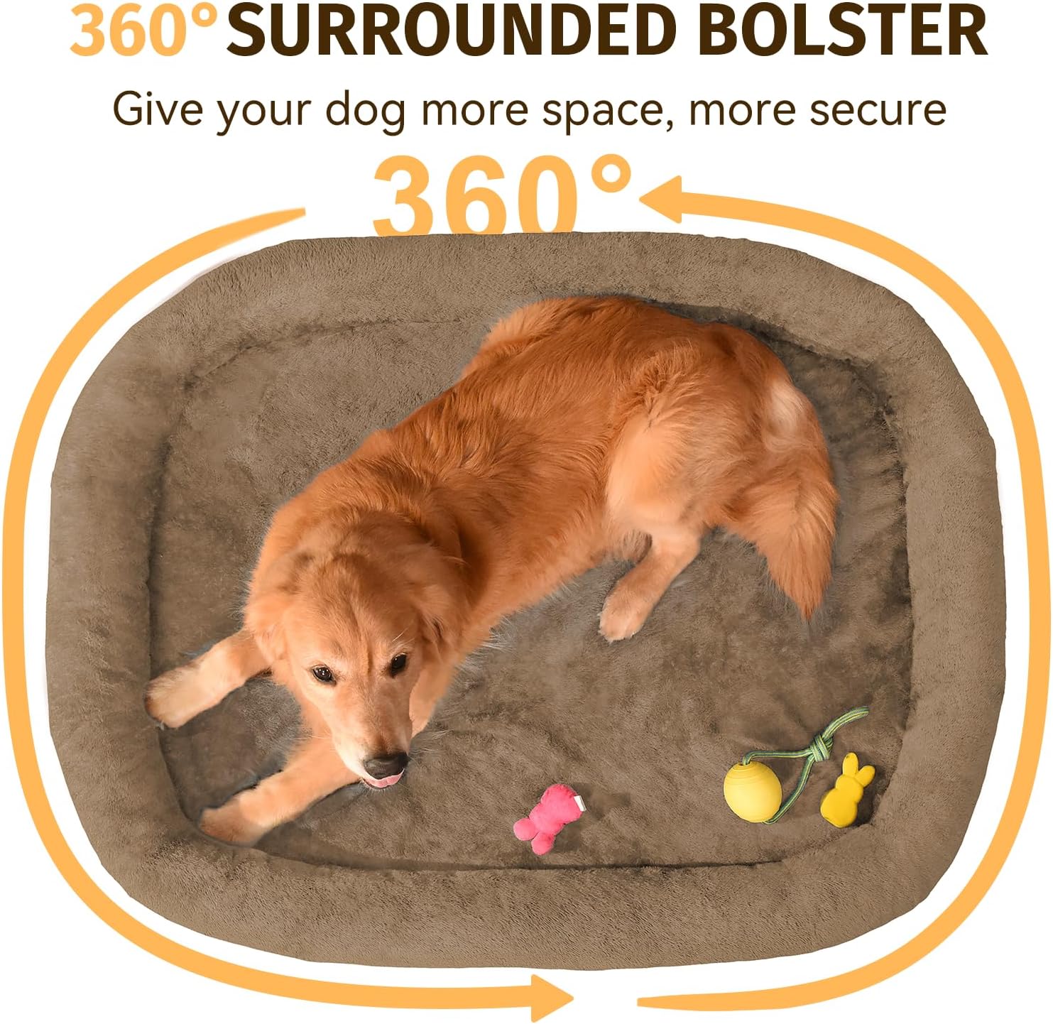 - 360° Surrounded Support: This 360° full circle design creates a secure sleeping environment, making dog bed xl ideal for dogs who prefer a more enclosed space; The bolsters also served as a headrest that provides additional support for the neck and back; Whether your dog likes to curl up or stretch out, this orthopedic dog bed accommodates all sleeping position