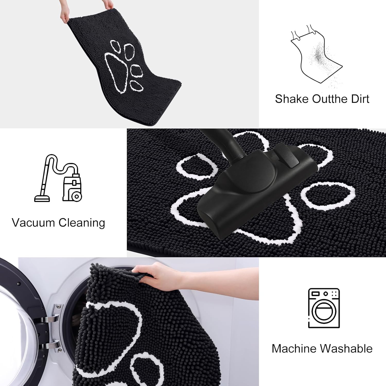 Smiry Dog Door Mat for Muddy Paws, Absorbent Dirt Trapper Non Slip Quick Dry Washable Chenille Mat for Mud Dogs, Entry Rug for Indoor and Outdoor (71x46 Inches, Black)