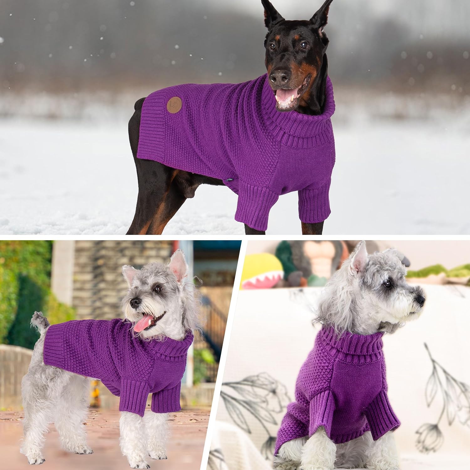 cyeollo Dog Sweater Pullover Turtleneck for Large Dogs, Classic Knitwear Fall Winter Cold Weather Dog Clothes Warm Pet Apparel Medium Large Dog Sweaters, Purple 2XL
