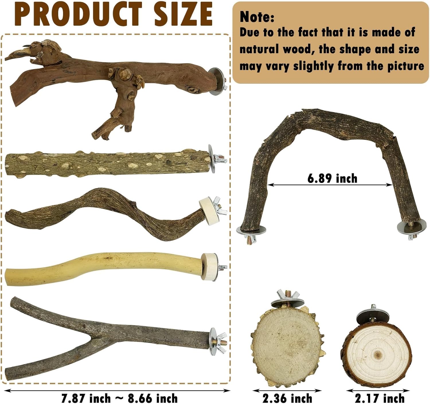 - Easy to Install: Each wooden perche comes with metal shaped nuts and built-in bolts, which makes it easy to attach it to the bird cage without any other additional tools. You can freely arrange the perches according to the birds' preferences, these bird perches for cage are the great accessory for any bird cage, providing rich activities for birds