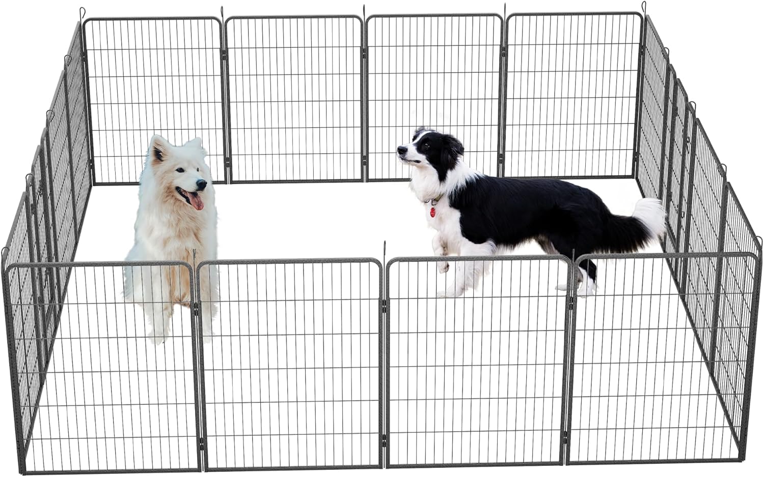 Dog Playpen, Outdoor Dog Fence, 16 Panels, 40" H Dog Pen for Medium/Small Dogs, Heavy Duty Metal Pet Fence with Gate, Portable Dog Fence for RV Camping and Yard (Black)
