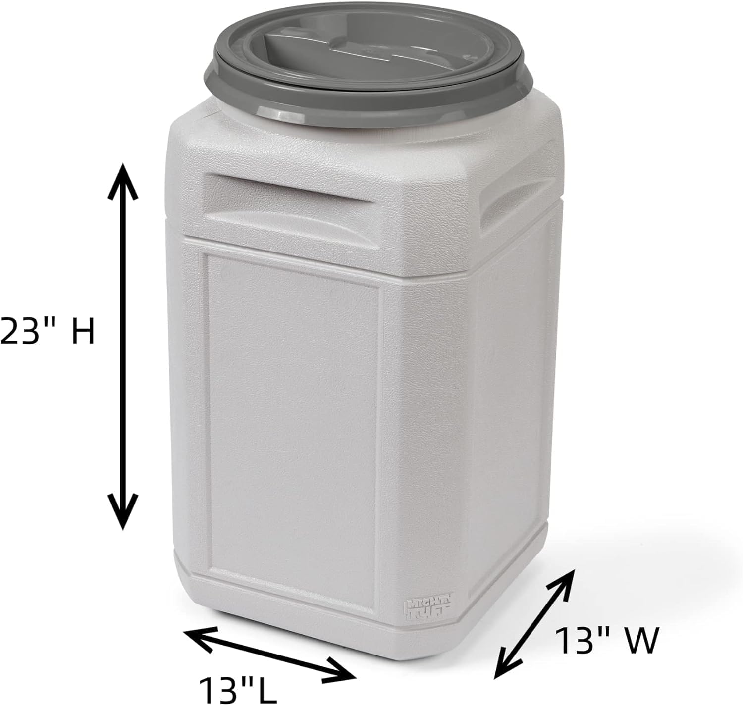 - HEAVY DUTY: Large pet food container holds 13 Gallons/up to 48 lbs. of pet food and is equipped with the Air-Tight Mighty Tuff twist lid. Dolly holds up to 125 lbs.