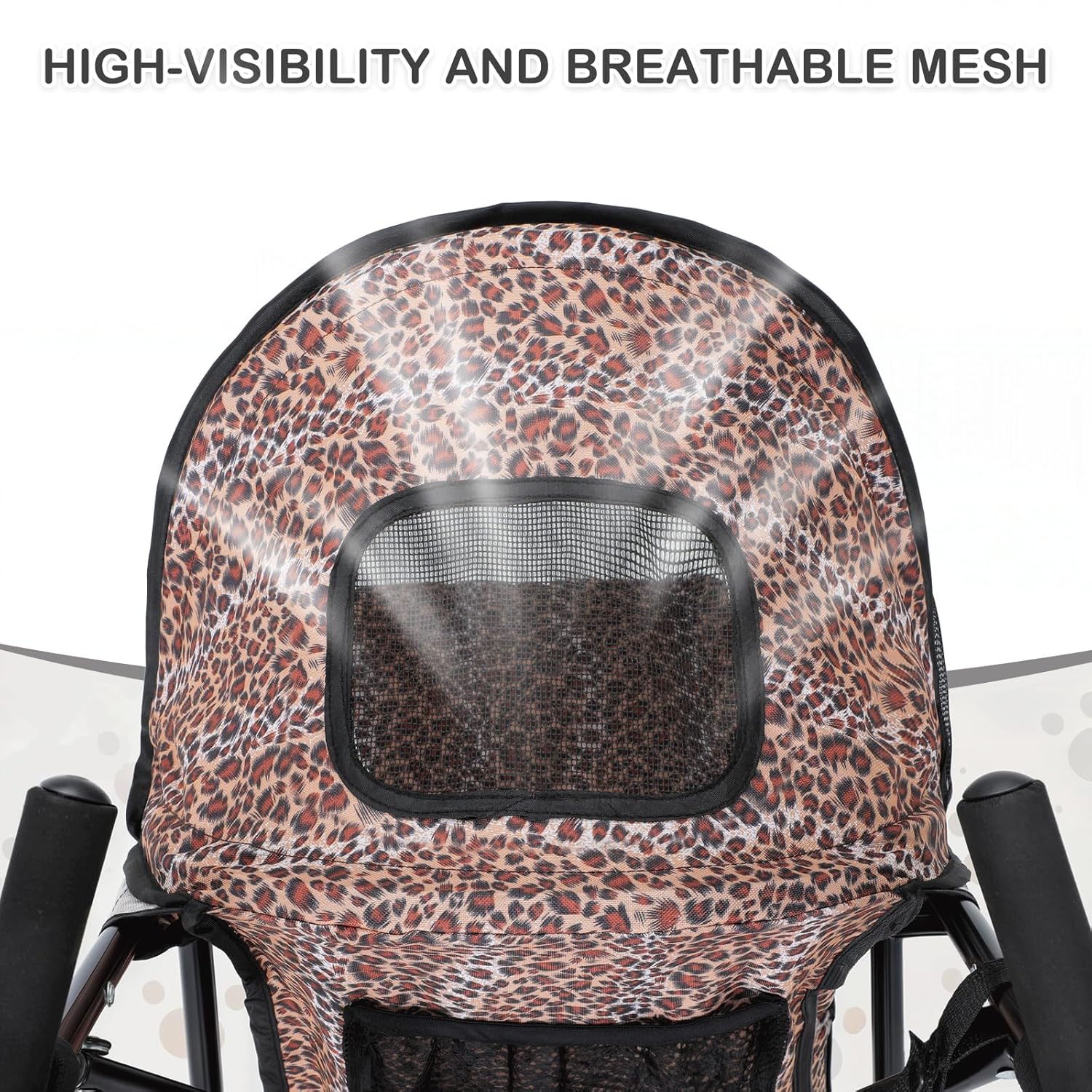 MoNiBloom 4 Wheels Pet Stroller, Easy-Fold Umbrella Shaped Dog Cat Jogger Stroller w/Storage Bag & Visible Mesh for Small/Medium Dogs Cats Leopard Print