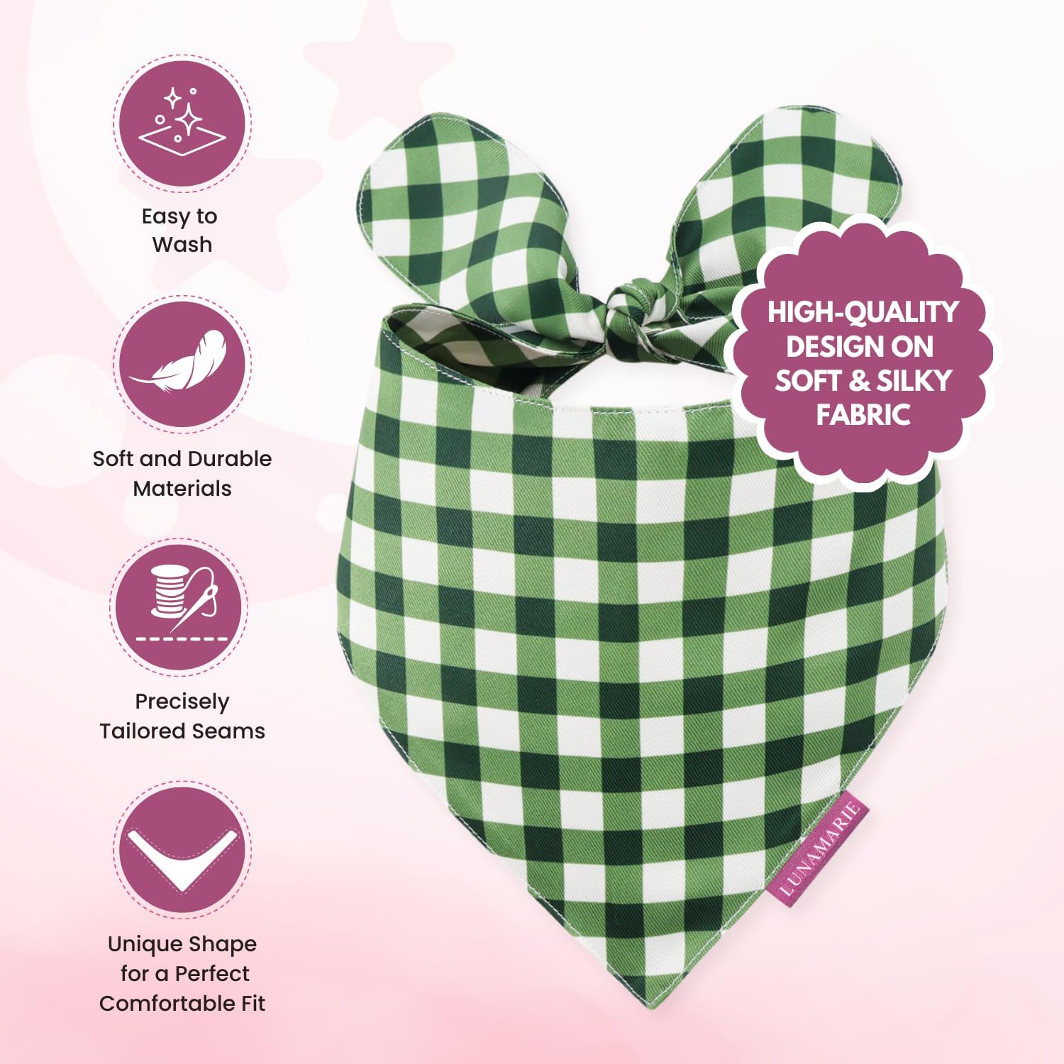 LunaMarie - Luxury Pet Birthday Bandanas -Premium & Silky Poly Fabric | 100% Handmade | Custom Shape Dual Layered (Olive, Medium)