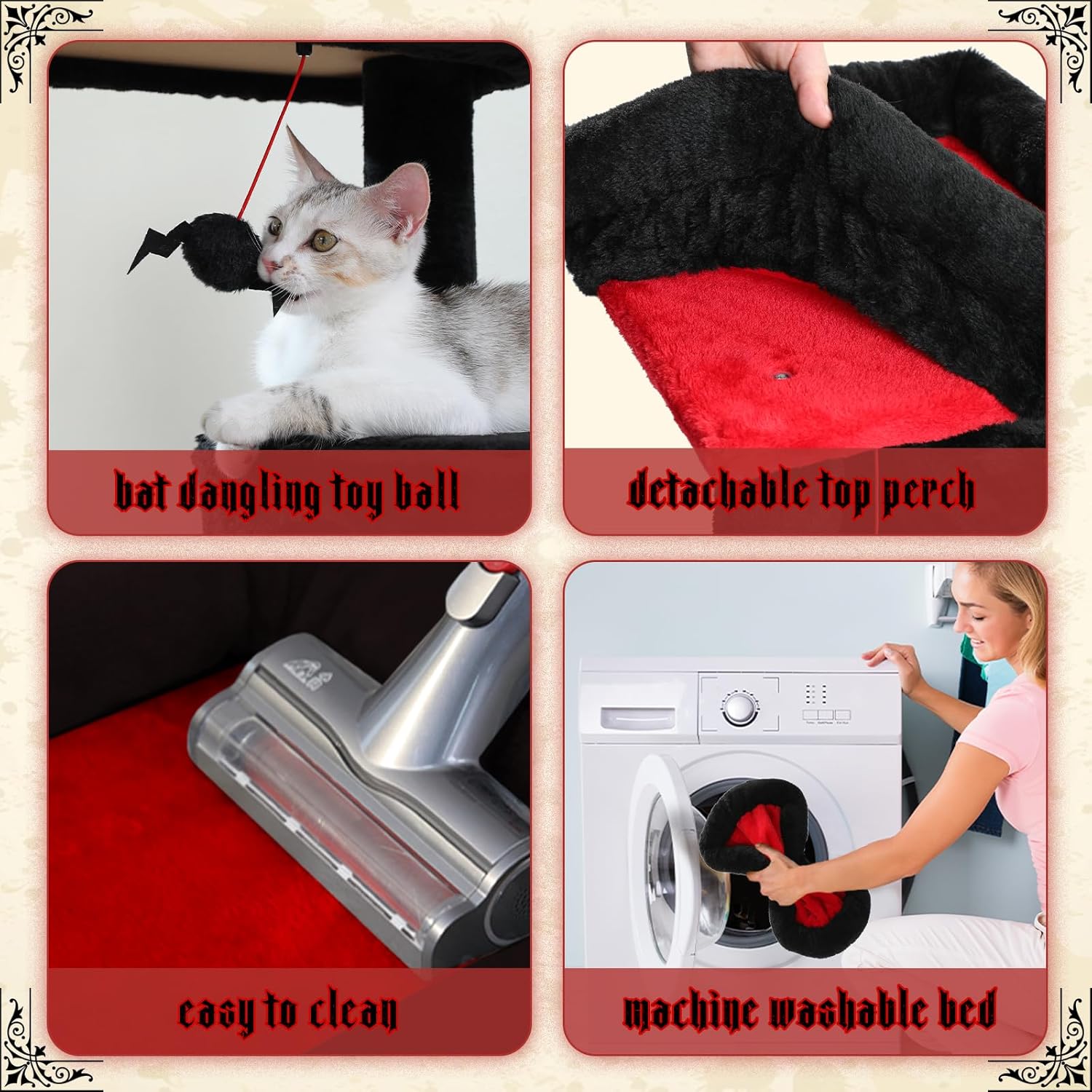 - Reliable Quality: Stability and safety are always the key points. Crafted by soft plush fabric, CARB-certified natural particle boards, firm sisal wrapped posts and strengthened base, it’s sturdy and safe for fat and heavy cats to bounce and enjoy up on their castle with ease