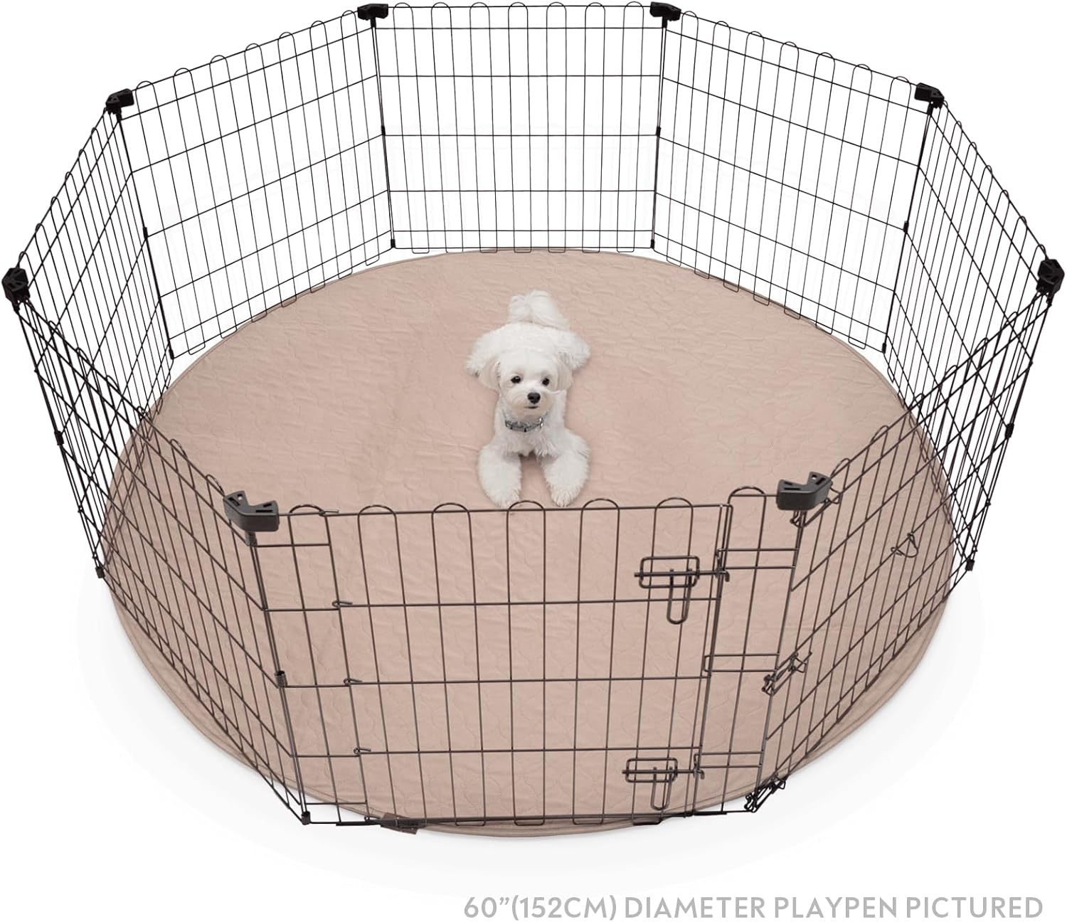 - MANY USES: The round shape makes these puppy pads perfect for playpens! You can also use them as housetraining pads for puppies, in whelping pens, as incontinence pads, or simply for lining your floor, carpet, rug, bed, couch, or other furniture. Use as a food or water bowl placemat or as a sofa or chair cover to protect your house from accidents like urine or liquid spills and other messes.