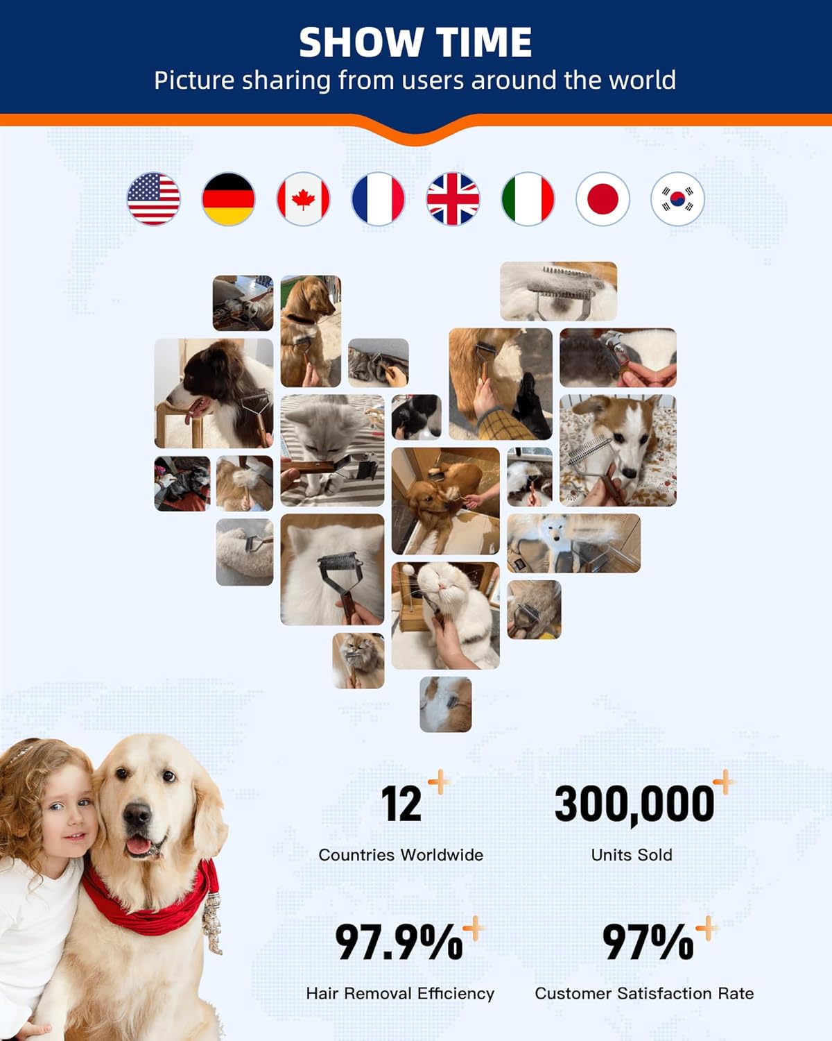 Extra Large 2-Sided Undercoat Rake for Dogs & Cats, Dog Brush for Shedding Remove Mats, Dematting Comb, Safe&Gentle Grooming Brush for German Shepherds Medium to Long-Haired Pets, Wooden Handle(Black)