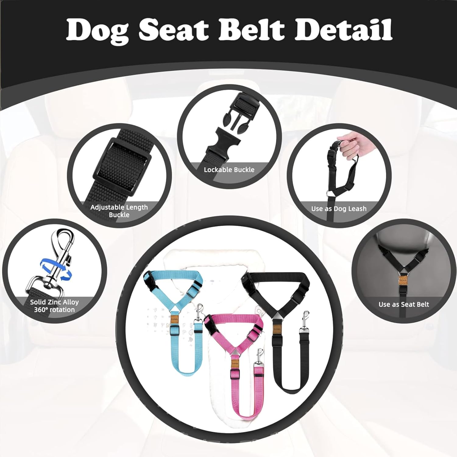 - 【Important Safety Reminder】For your pet's safety, please avoid attaching the dog cat safety seatbelt strap directly to your pet's collar. We recommend using it with a harness instead, ensuring a comfortable and secure experience for your pet. This car headrest restraint provides a safer alternative to standard collars, giving your pet both freedom and security while you drive. Available in a convenient 3-pack with black, blue, and pink color options.