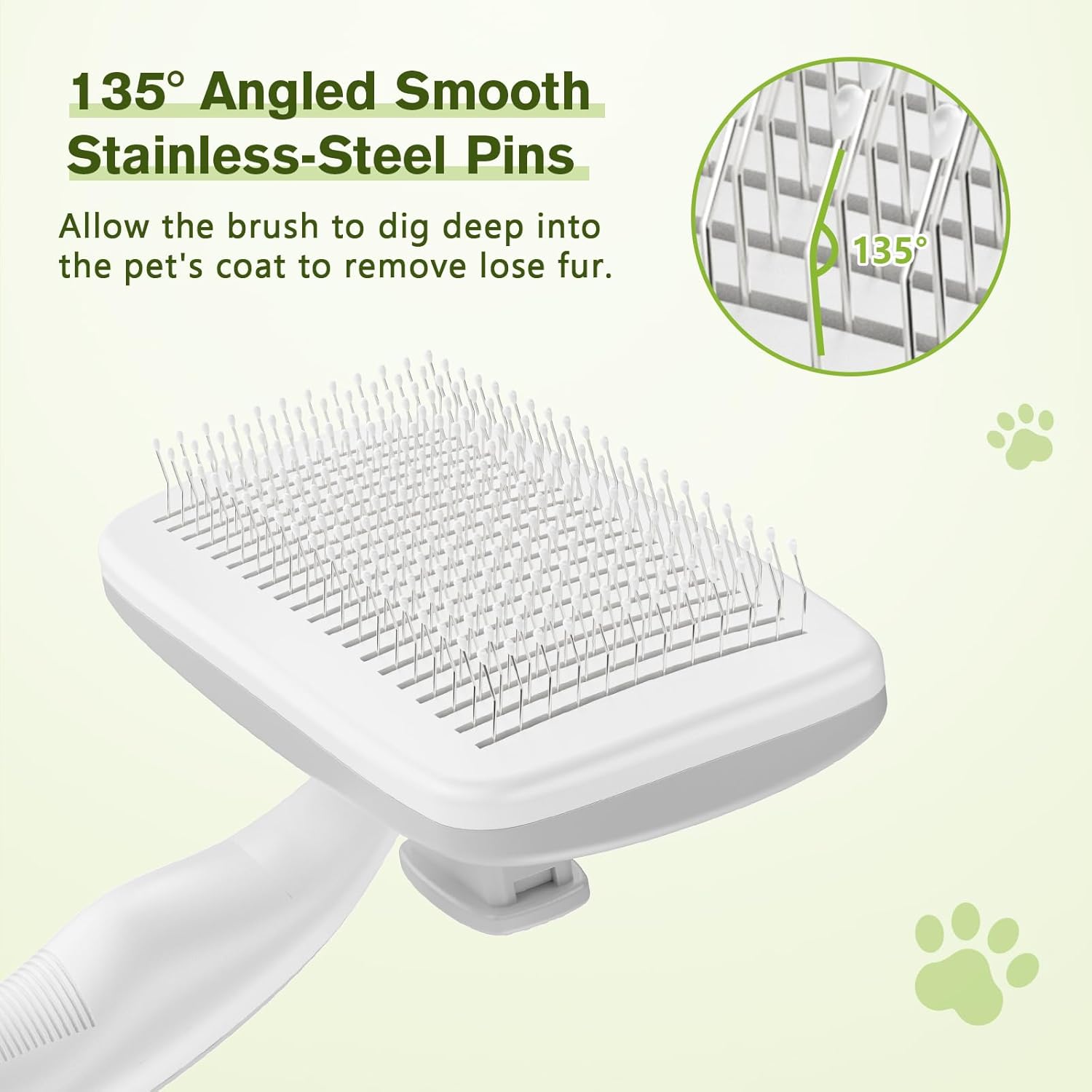 - EFFICIENT FUR REMOVAL, GENTLE ON YOUR PET'S SKIN : The pet hair brush is designed with fine 135° stainless steel bristles and gentle massage particles that effectively remove loose hair, dander, & dirt trapped beneath the fur without causing any discomfort or irritation to the pet's skin. Leave the pet's fur soft and shiny!