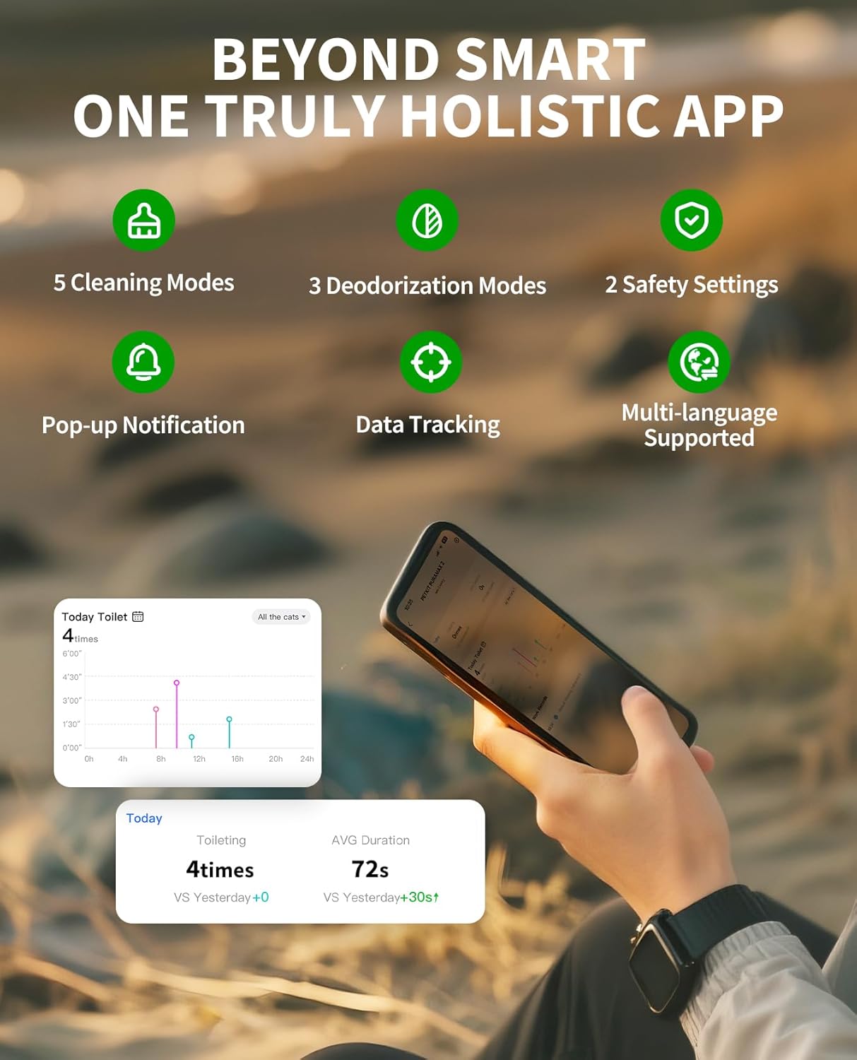 - Smart App Control: 2.4GHz enabled, all-in-one app for holistic toilet data and remote control. With the PETKIT smart app, you can track the litter box usage data, check working status and set cleaning modes. The smart litter box automatically identifies cats based on their weight.Each cat’s weight,toilet frequency and duration will be recorded on the app. By tracking the clear data records, you will gain more insight into your pet's health and identify any irregular occurrences.