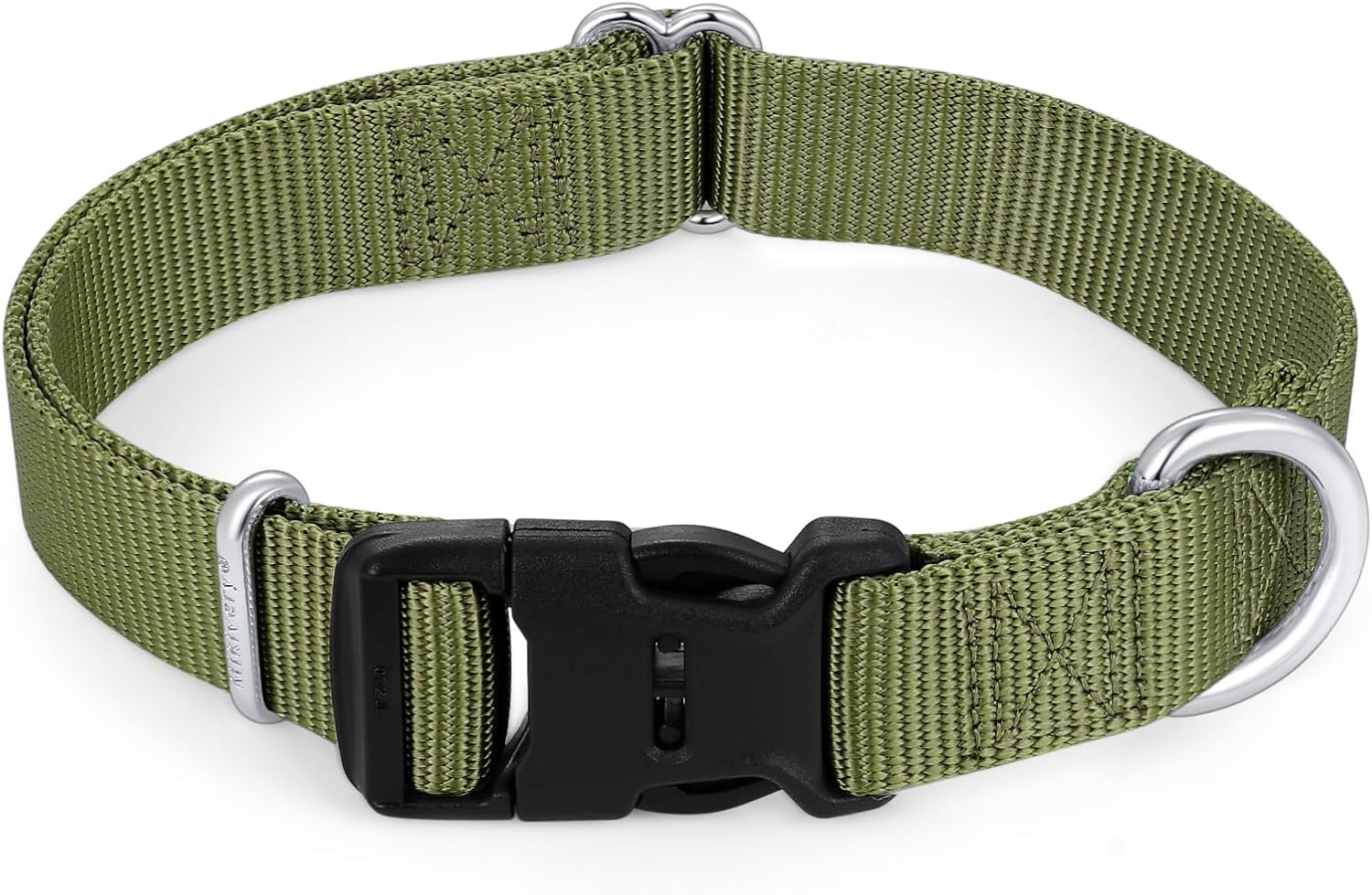 Mikivery Nylon Dog Collar with Quick Release Buckle Soft Adjustable Sturdy for Small Medium Large Dogs Military Green,M