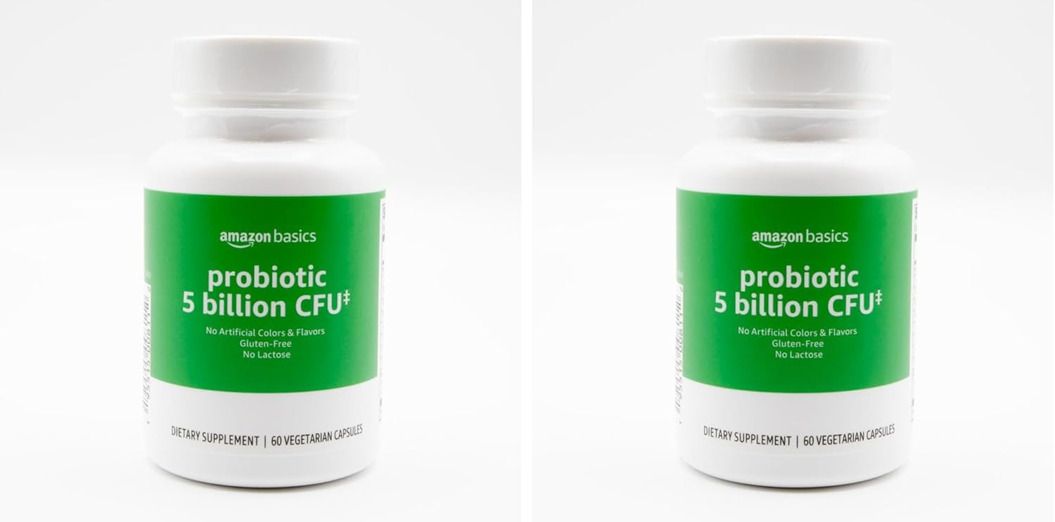 Amazon Basics Probiotic 5 Billion CFU, 8 Probiotic strains with 60 mg Prebiotic Blend, 60 Count Vegetarian Capsules, 2 Month Supply, Supports Healthy Digestion (Previously Solimo) (Pack of 2)