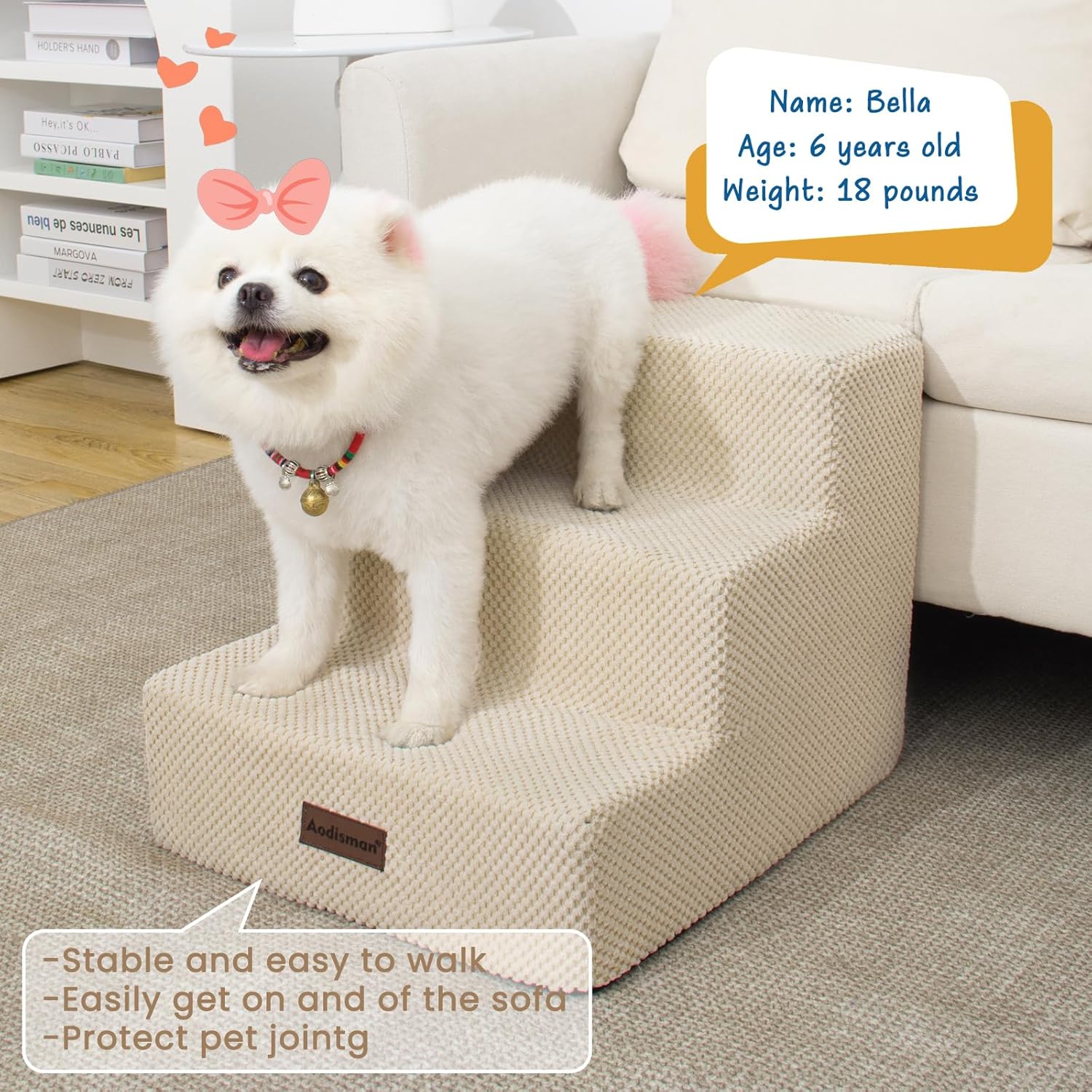 Dog Stairs for Small Dogs & Cats, 3-Step Non-Slip Pet Steps for Couch Sofa and Chair, Beige, 13.6" H