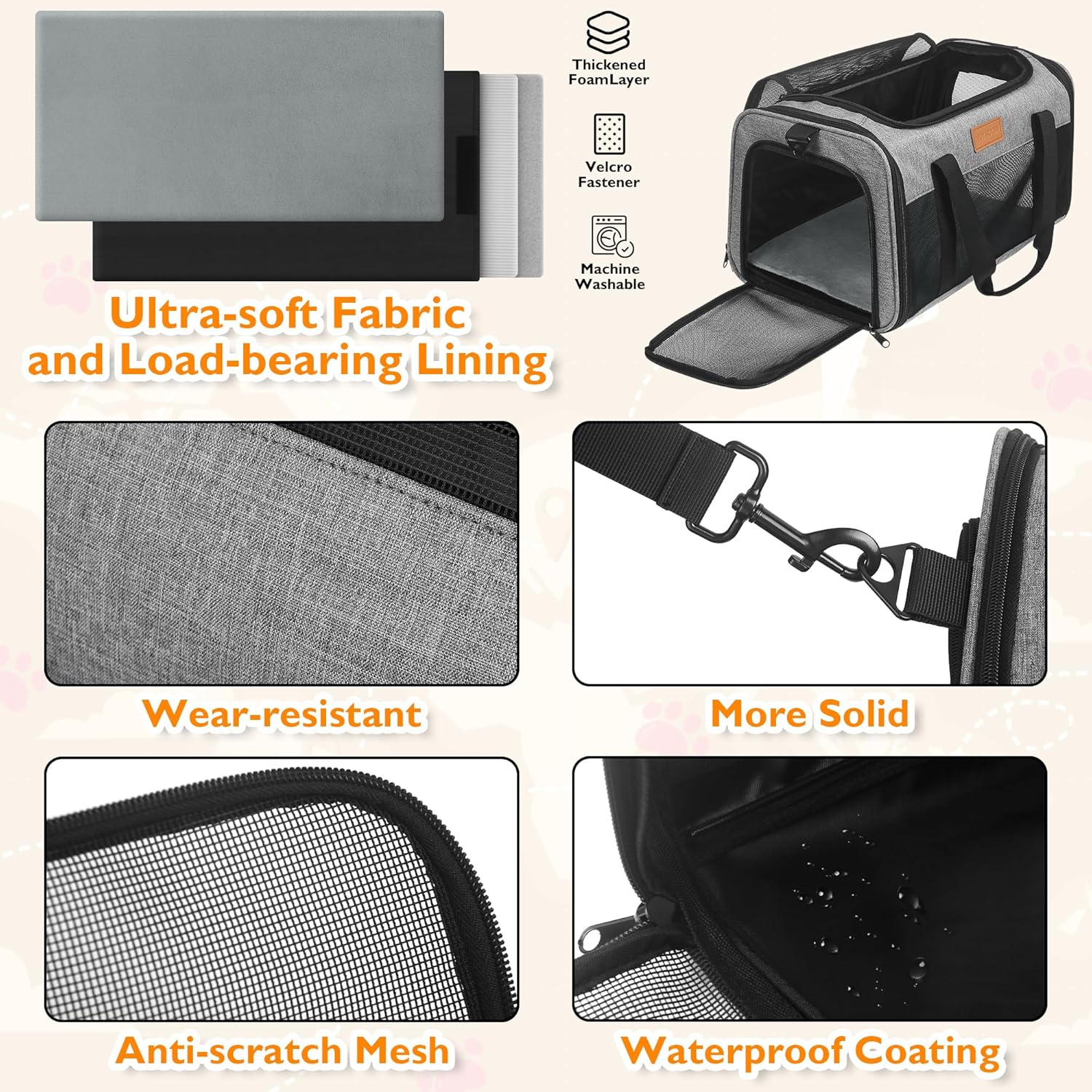 - 【Durable, Safe & Waterproof Soft-Sided Cat Carrier】 Crafted from high-quality, waterproof fabric, the PETUX cat bag carrier offers protection against the elements. It has a safe leash and a compact design that fits under the seat, allowing you to take your pet with you on your flights without worry. The top opening makes it easy to access your pet and provides comfort during travel. So the TSA-approved pet carrier in the cabin is also easy to wipe clean, making it ideal for frequent travelers