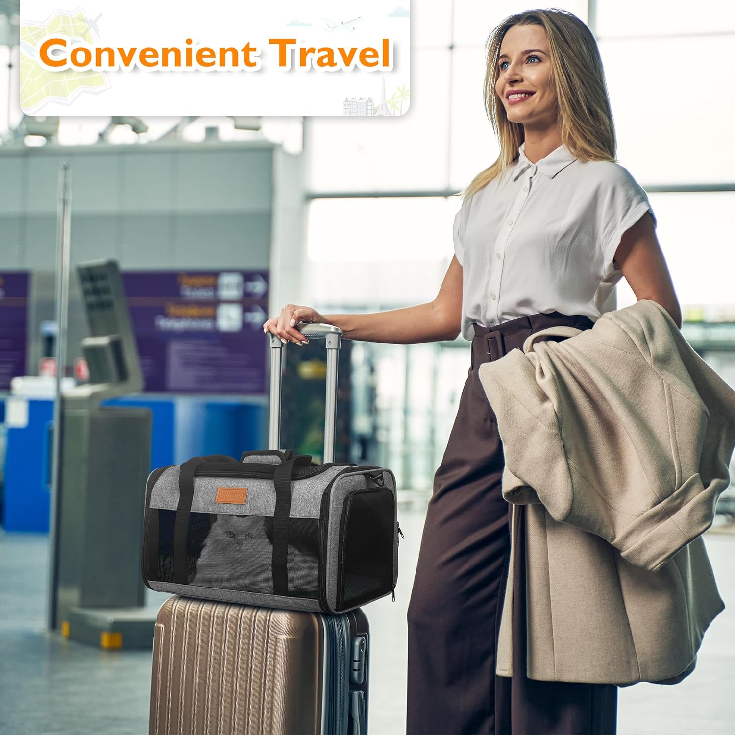 PETUX TSA Approved Pet Carrier in Cabin, 17"x11"x9.5" Soft Cat Carriers for Small Cat up to 12 lb and Puppy up to 10 lb, Top Open Portable Pet Carrier Airline Approved for Travel and Vet Visit (Grey)