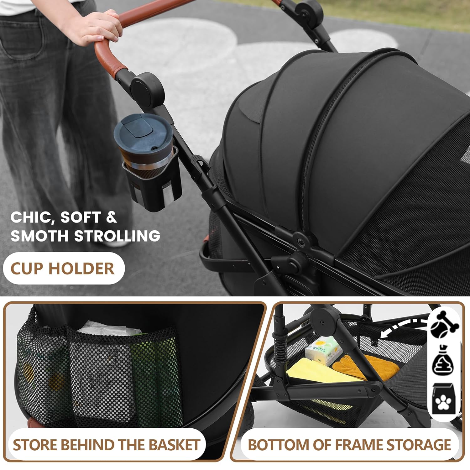 - VERSATILE STORAGE SOLUTIONS - Never leave essentials behind with the ample storage basket, convenient cup holder, and dual mesh pockets. Perfect for storing treats, water, and your personal items, making every outing flawless. Whether it's a quick errand, a daily run, or an off road adventure, packing is a breeze.