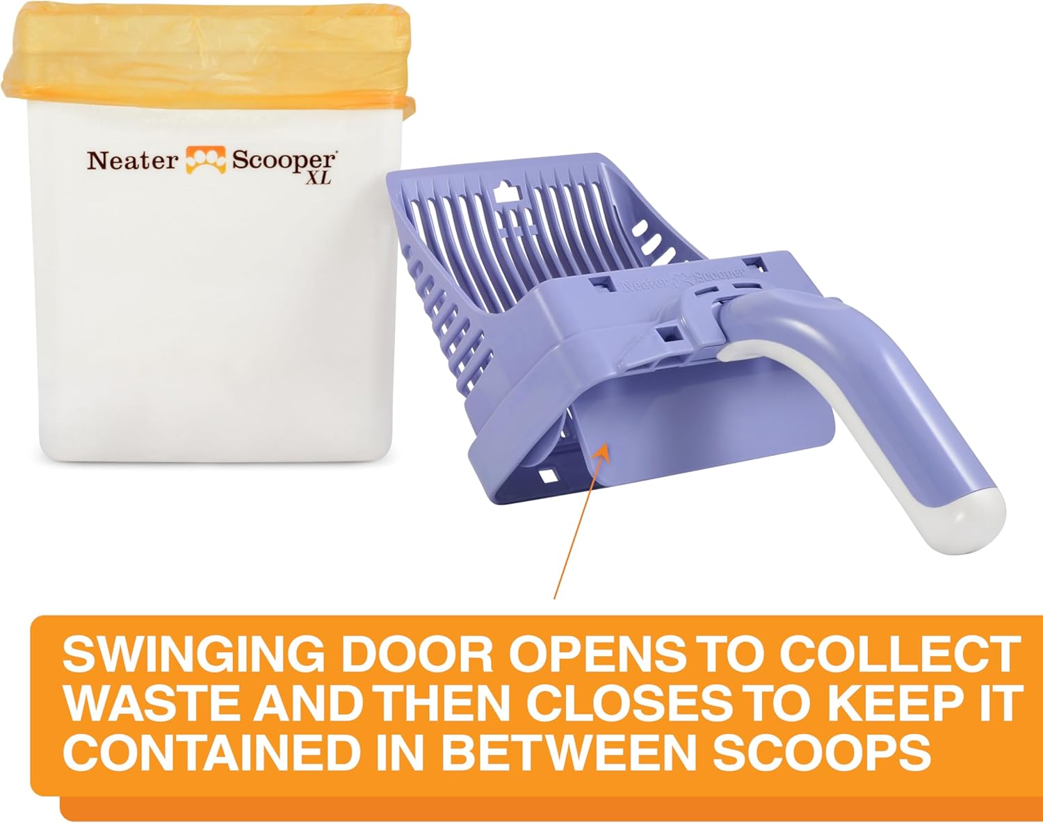 - REFILL BAGS & DISPENSER INCLUDED: Includes 15 lavender-scented refill bags and a dispenser that attaches to your litter box. The bags are larger than standard pet waste bags and custom-fit for the Neater Scooper XL. For refills, choose orange Neater Scooper XL refill bags for a perfect fit.