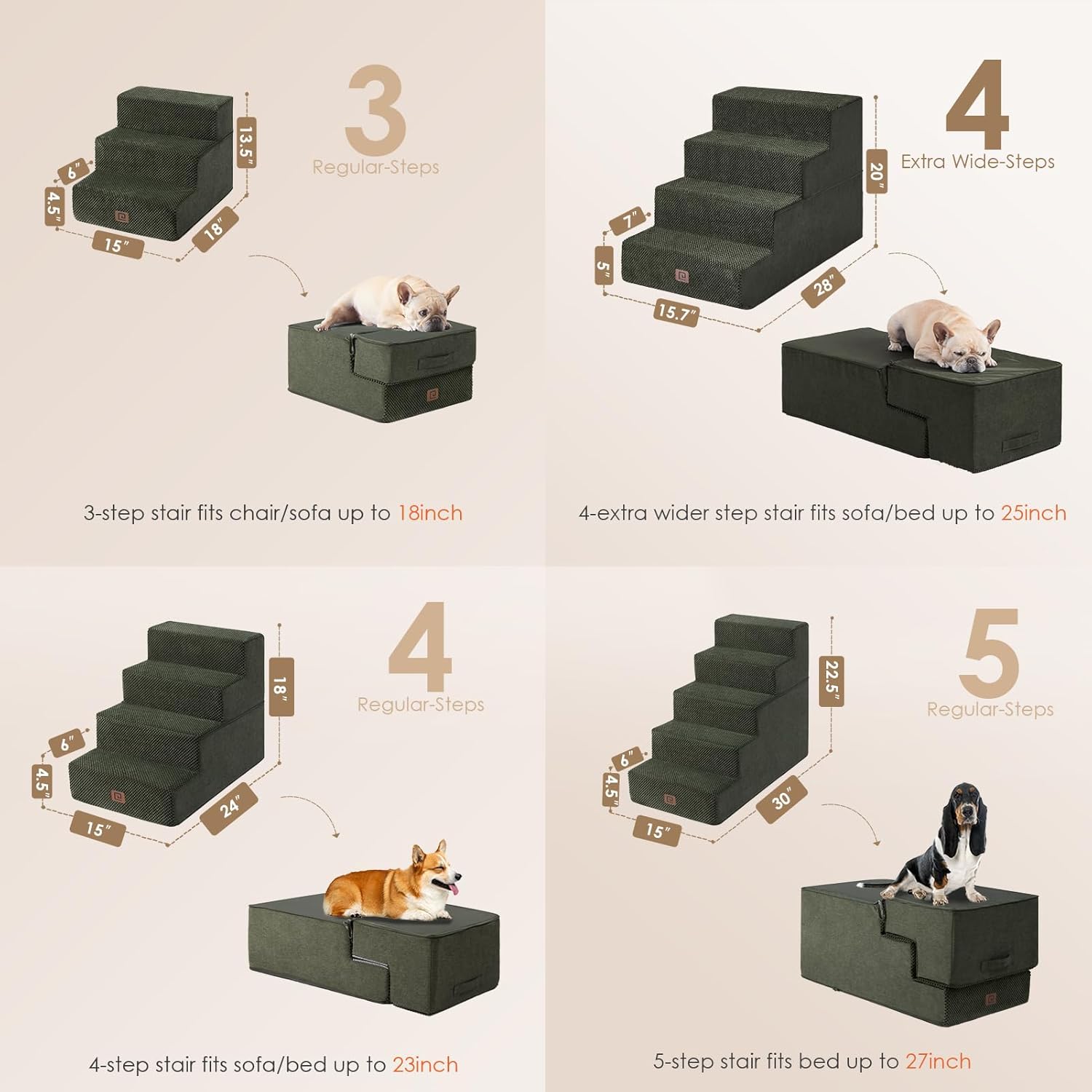 EHEYCIGA Dog Stairs for Bed 20" H, 4-Step Extra Wide Dog Steps for High Bed, Pet Steps for Small Dogs and Cats, Non-Slip Balanced Pet Ramp Indoor, Olive Green