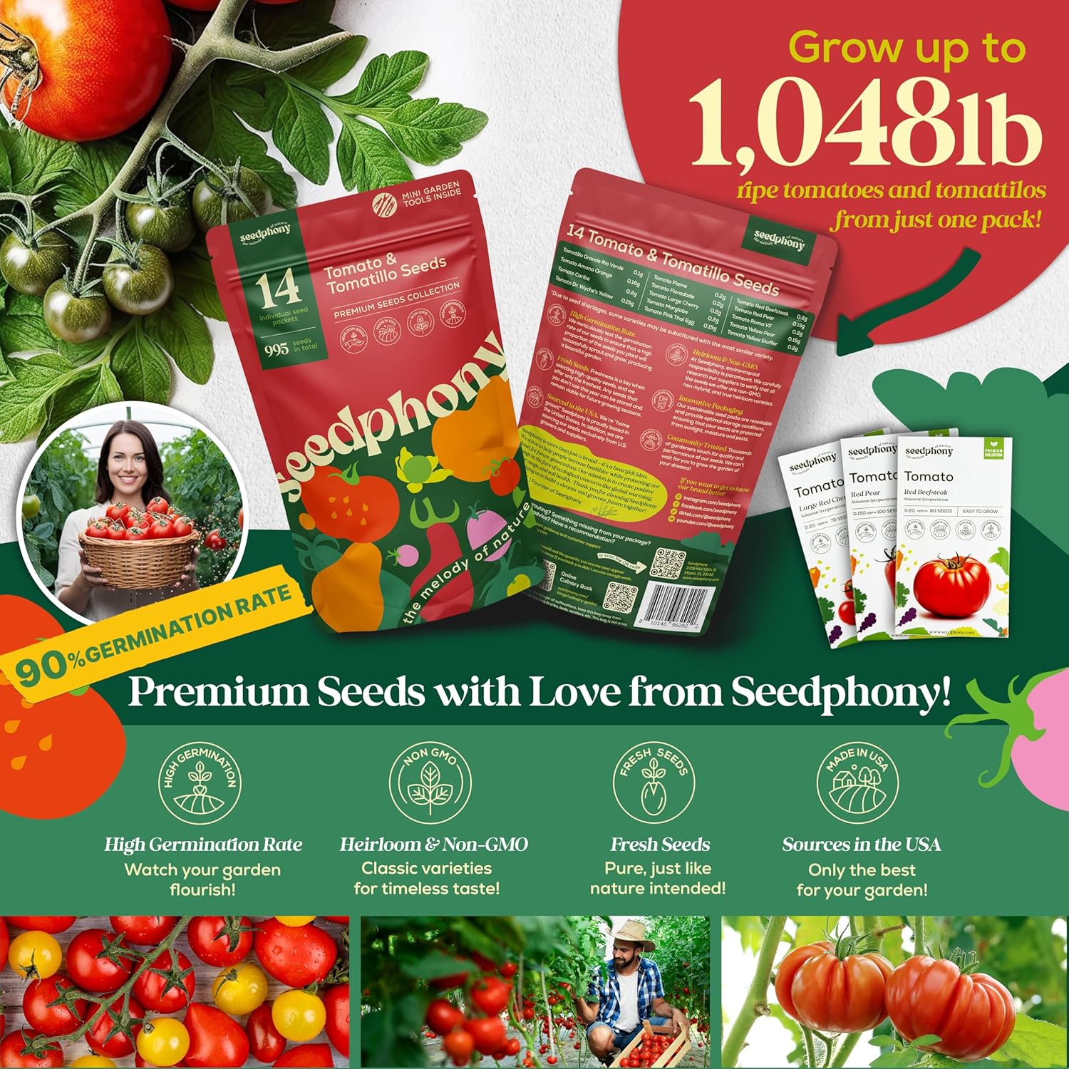 - High-Germination Seeds for Indoor & Outdoor Planting: Achieve exceptional results with our non-GMO heirloom seeds, boasting a 90%+ germination rate. Perfect for indoor hydroponic system or backyard vegetable garden, containers or raised beds, these heirloom tomato seeds boast a high germination rate for successful growth in any setting.