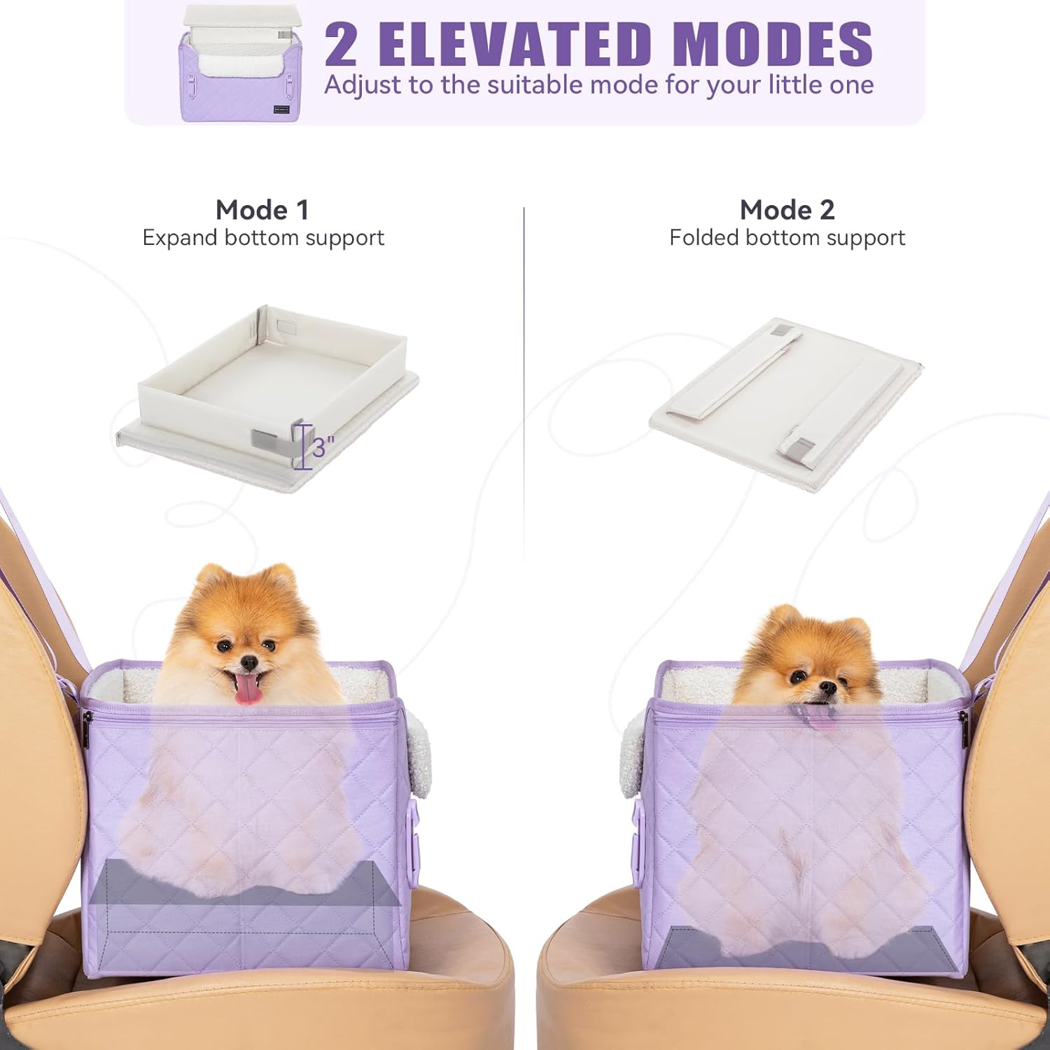 - [Versatile and Adjustable for Enhanced Viewing] Not just a cat car seat, it multiple uses including two elevated modes to adjust the height by 3.15 inches, ensuring your pet enjoys a better view of the surroundings. This versatile car seat for dogs can also transform into a cozy bed for car rides or even office use, making it an indispensable accessory for pet owners