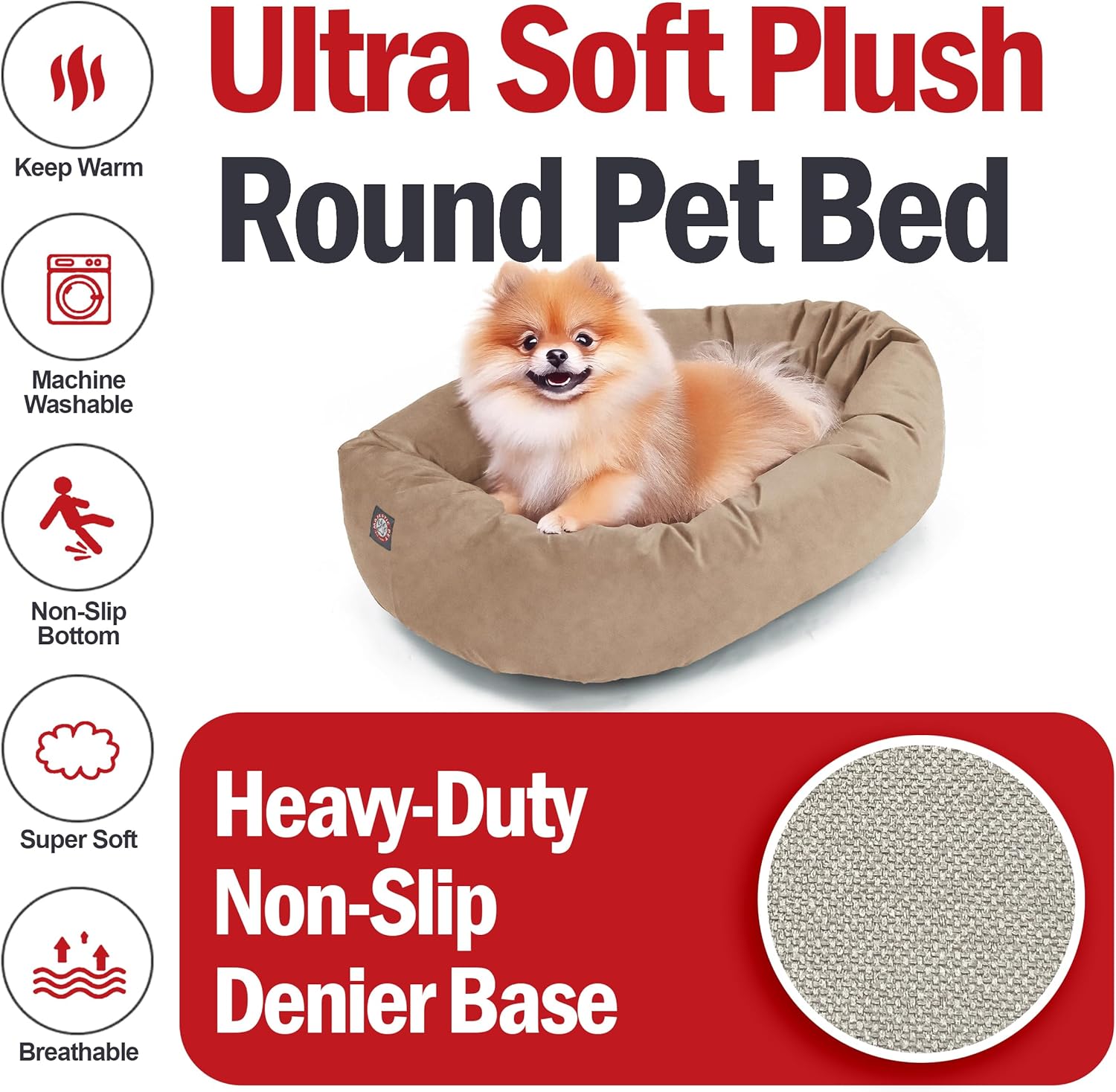 Majestic Pet 24 Inch Suede Shredded Memory Foam Mix Calming Small Dog Bed Washable 24 x 19 x 7 (Inch) - Cozy Soft Round Donut Dog Bed with Spine for Head Support - Pet Bed Stone