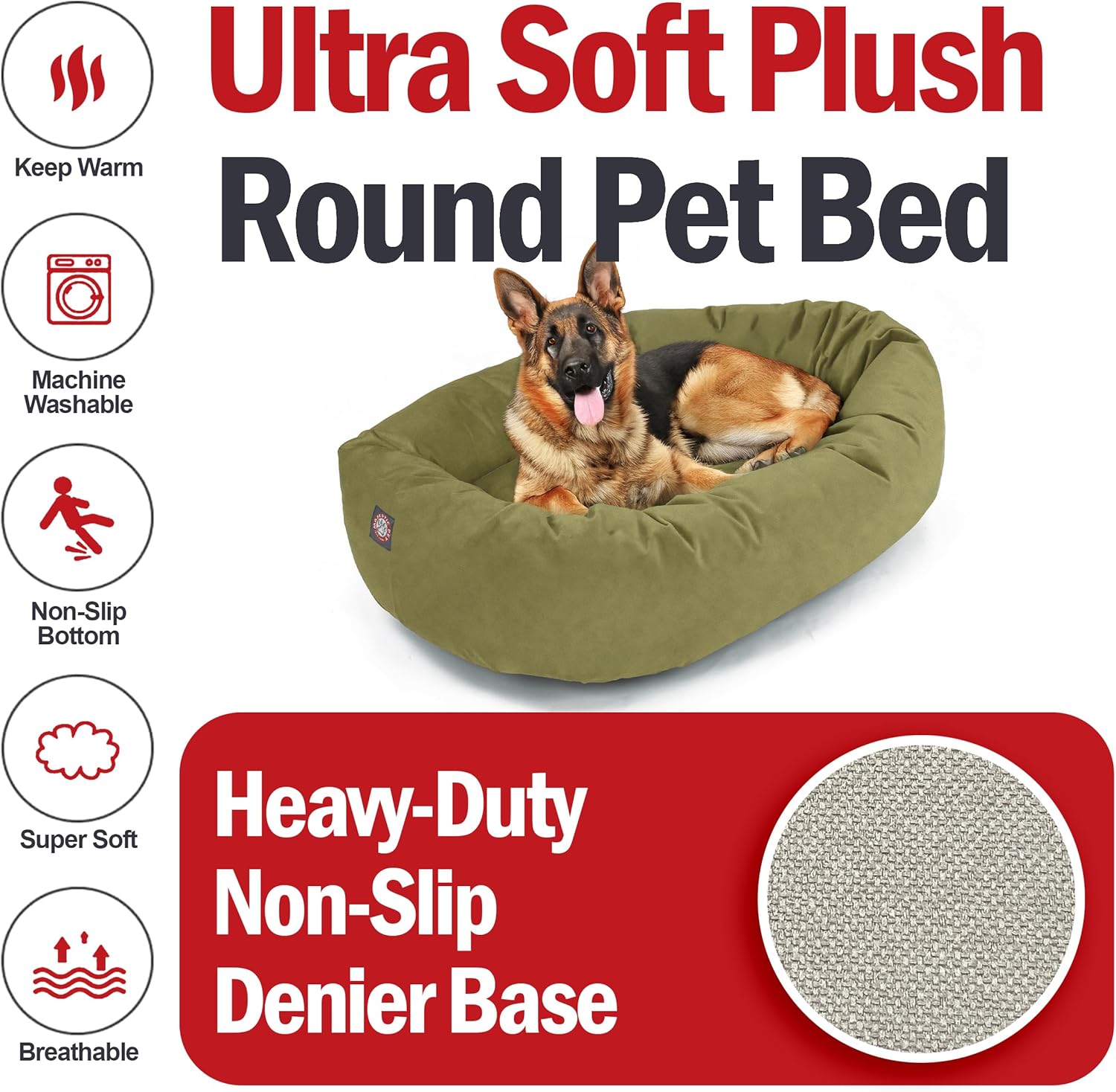 Majestic Pet 52 Inch Suede Shredded Memory Foam Mix Calming Extra Large Dog Bed Washable 52 x 35 x 11 (Inch) - Cozy Soft Round Donut Dog Bed with Spine for Head Support - Pet Bed Sage