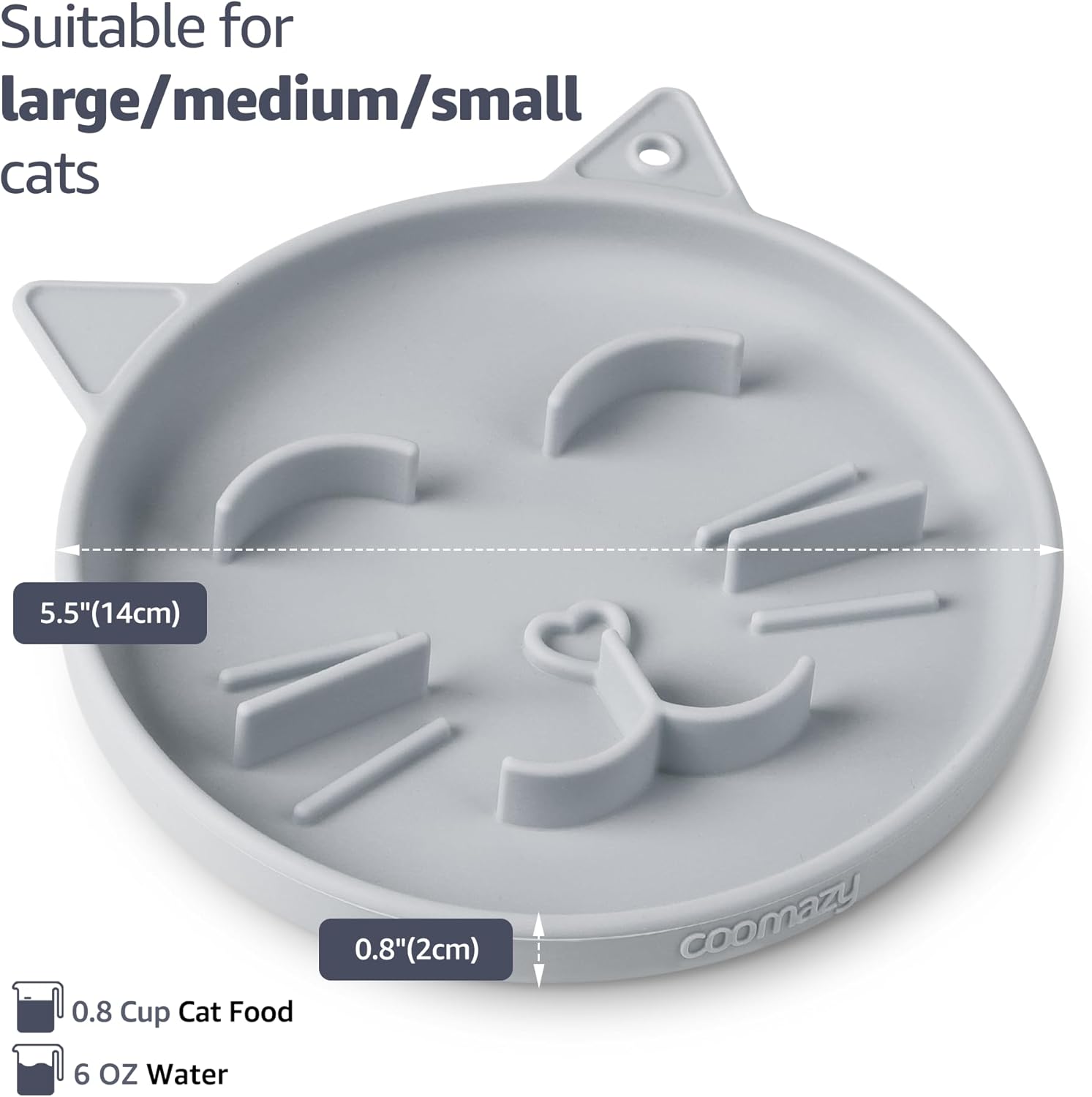 Coomazy Silicone Slow Feeder Dog Cat Bowls, Interactive Puzzle Toy for Pets Dry/Wet Food Training, Keeps Dogs Cats Busy, Prevents Puppy Kitty Overeating (Grey, 0.8 Cup)