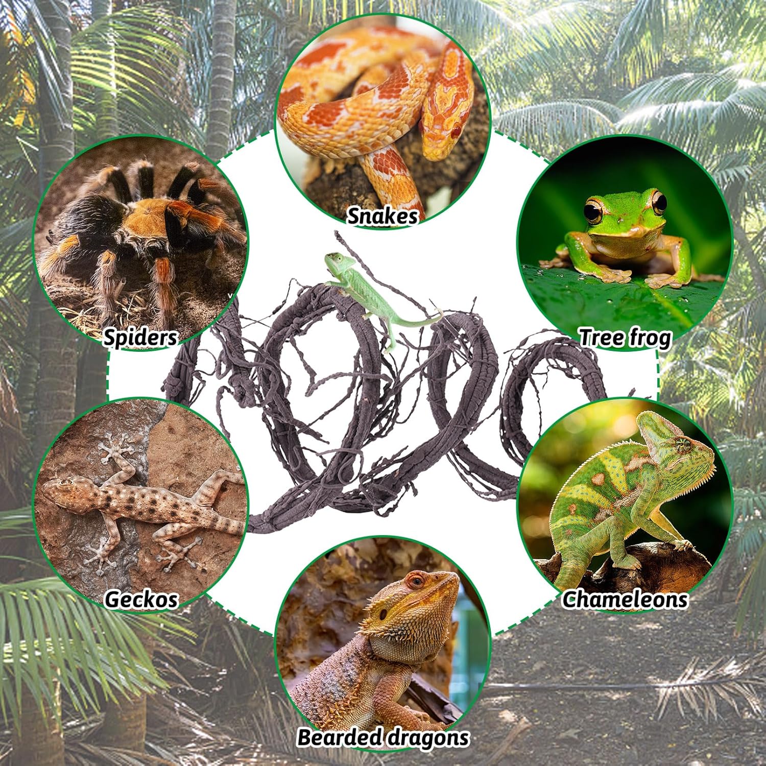 - Safe Material: Reptile jungle vines, inside is metal wire, outside is soft PU material, can be bent at will, suitable for all types of pet enclosures. You can DIY the shape you want to create rich habitat space and climbing paths