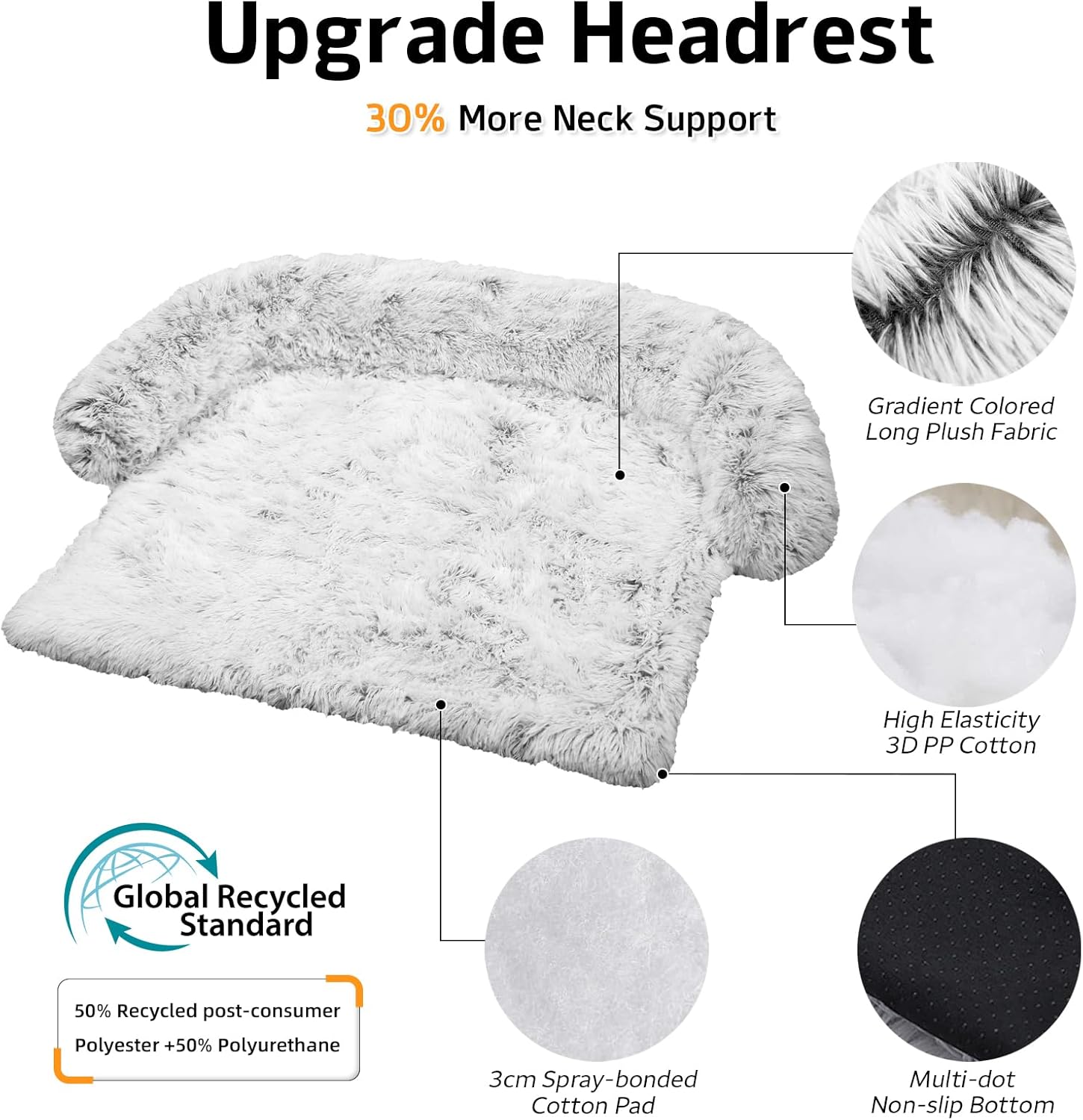 GGIB Calming Dog Bed Fluffy Plush Dog Mat for Furniture Protector with Removable Washable Cover for Large Medium Small Dogs and Cats (Extra Extra Large, Light Grey)
